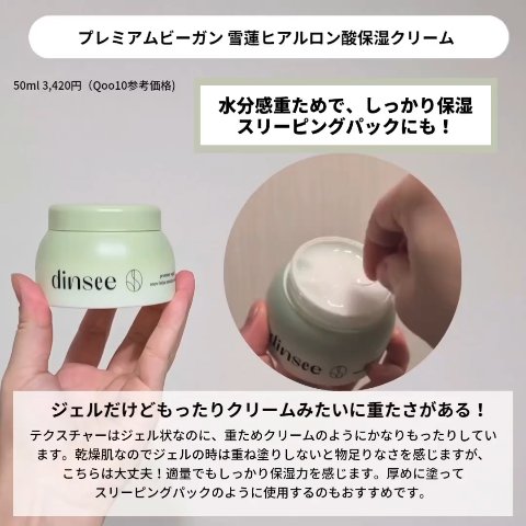 ディンシーならではのプレミアム希少原料雪蓮エキス配合🪷 強靭な生命力を持つ雪蓮は、カンフェロール、ビタミンC、アミノ酸成分が含まれていて、トーンアップや弾力ケアができる🫶 きめ細かな泡立ちでフワッといい香りがする🫧高級ホテルのお風呂みたいな香りで、すごく好きな香り😻 ジェル状のクリームでベタつかず、しっとり潤う🥰ツボクサエキスとヒアルロン酸配合で、鎮静効果と保湿を両方ケアしてくれる🫶