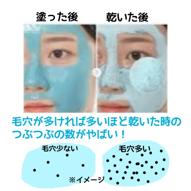 テクスチャは固めで厚塗りすると乾きずらいからなるべく薄く塗ると乾きやすくていいよ! 毛穴に悩んでる方ぜひおすすめします👈🏻 パックが毛穴の汚れ・黒ずみ皮脂を吸着して乾き始める。