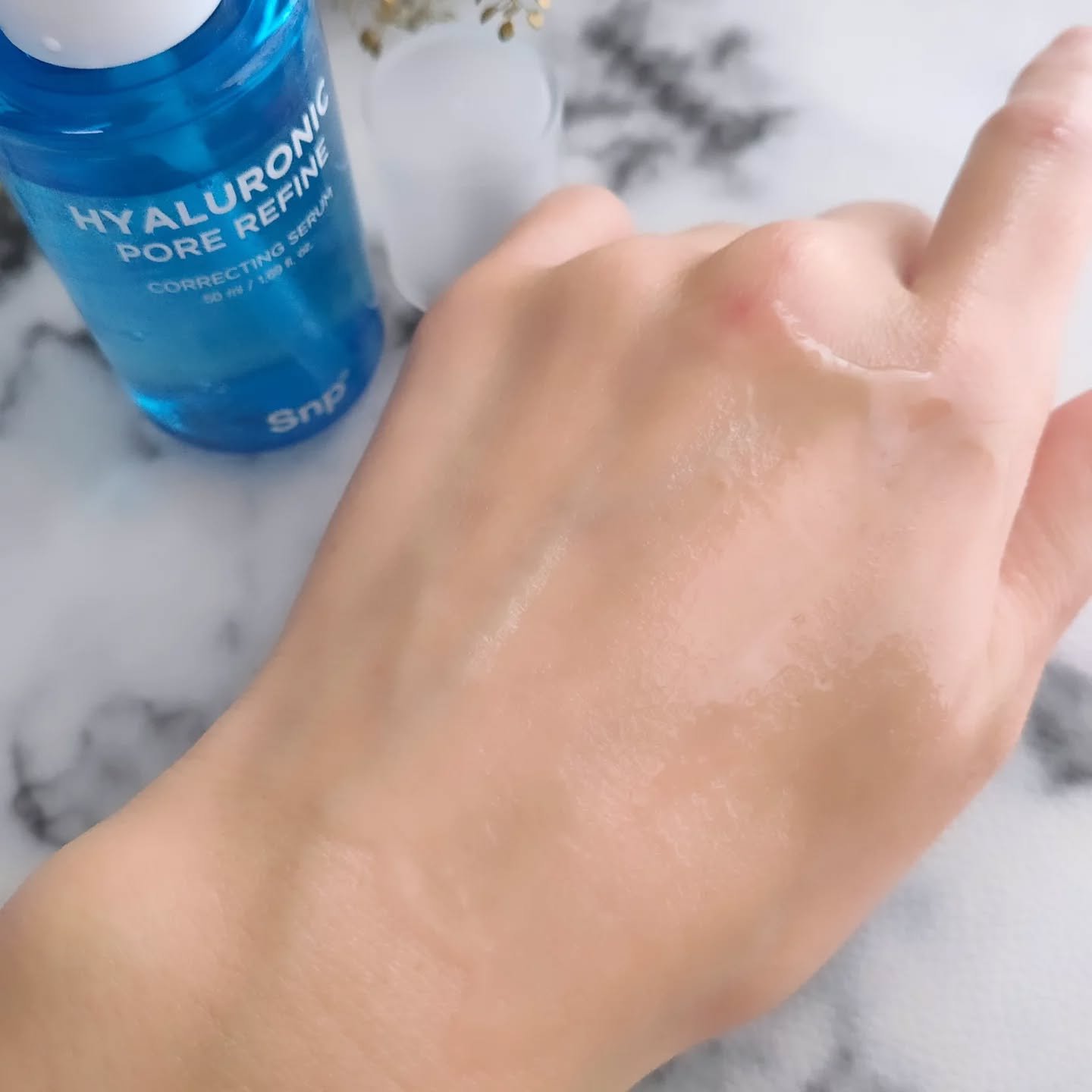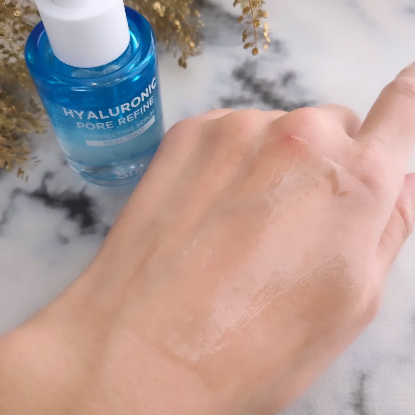 韓国初の毛穴ケアが期待できるヒアルロン酸ニードルが配合されたセラム。 無色透明、ゆるいとろみのあるテクスチャーで、重さはなし。伸びもよく肌にも心地よく馴染み、潤いを感じさせるようなしっとりとした使い心地だから使いやすいですね。