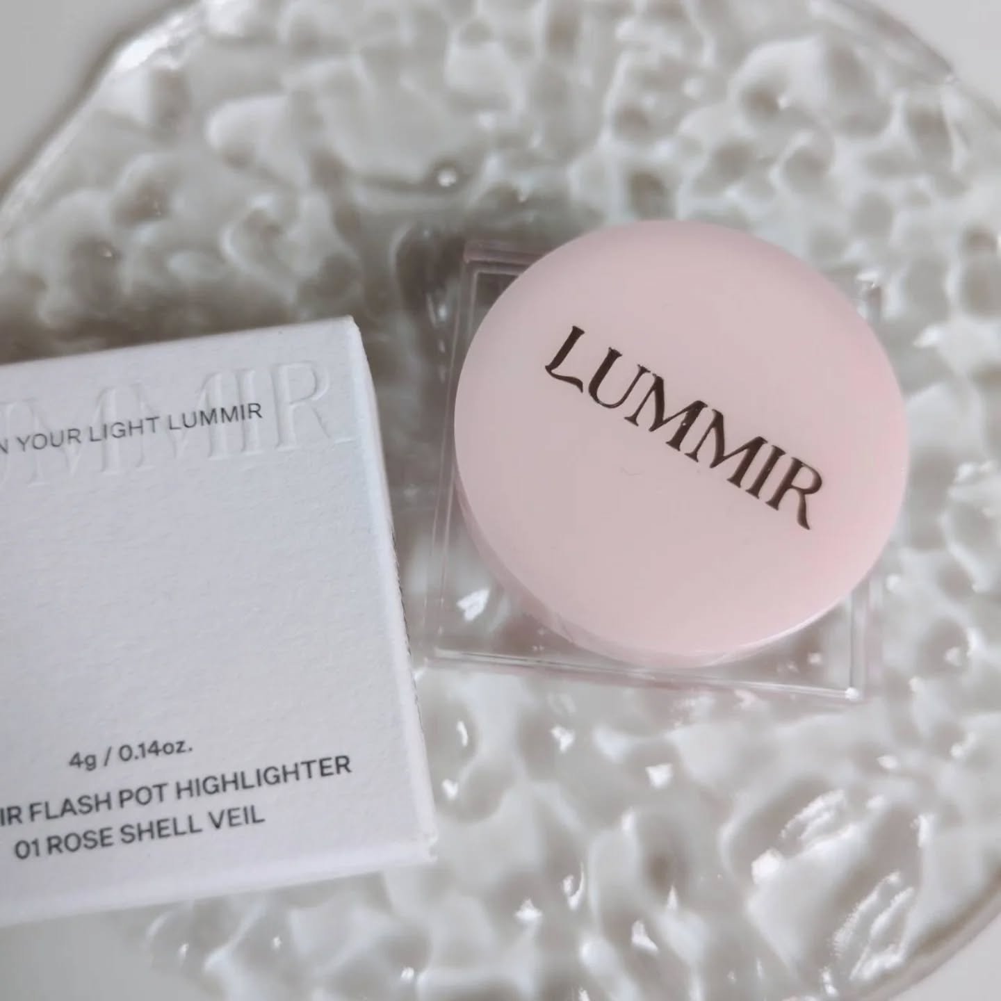 \濡れ感たっぷりピンクハイライト/Lummirフラッシュポットハイライト01ローズシェルベール真珠を砕いたような繊細なパールとオイルベースのダブルレイヤリングで透き通るような透明感のある艶肌に🫧しっとり伸びるテクスチャーで光をあつめたい部分に...