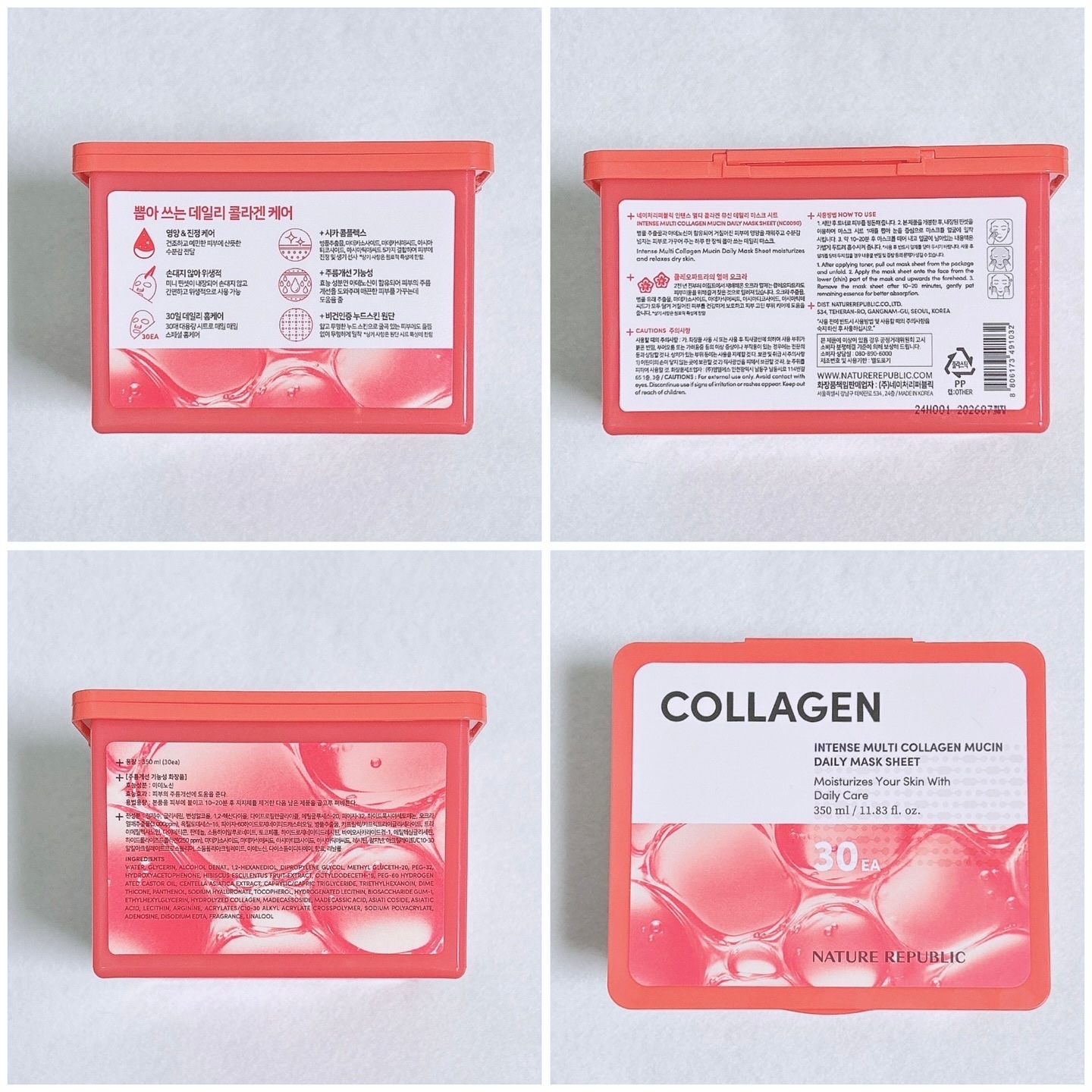 8種のペプチド成分により、お肌の内側から隙間なくしっかり弾力アップ✨ 薄い少しトロッと粘りのあるシートで密着も良く、液だれもせず、朝でも夜でも使いやすくて、香りも私は好きな香り💗 ブースティングセラムとコラーゲンデイリーシートマスクのコンビでお肌の弾力を取り戻したい🥹