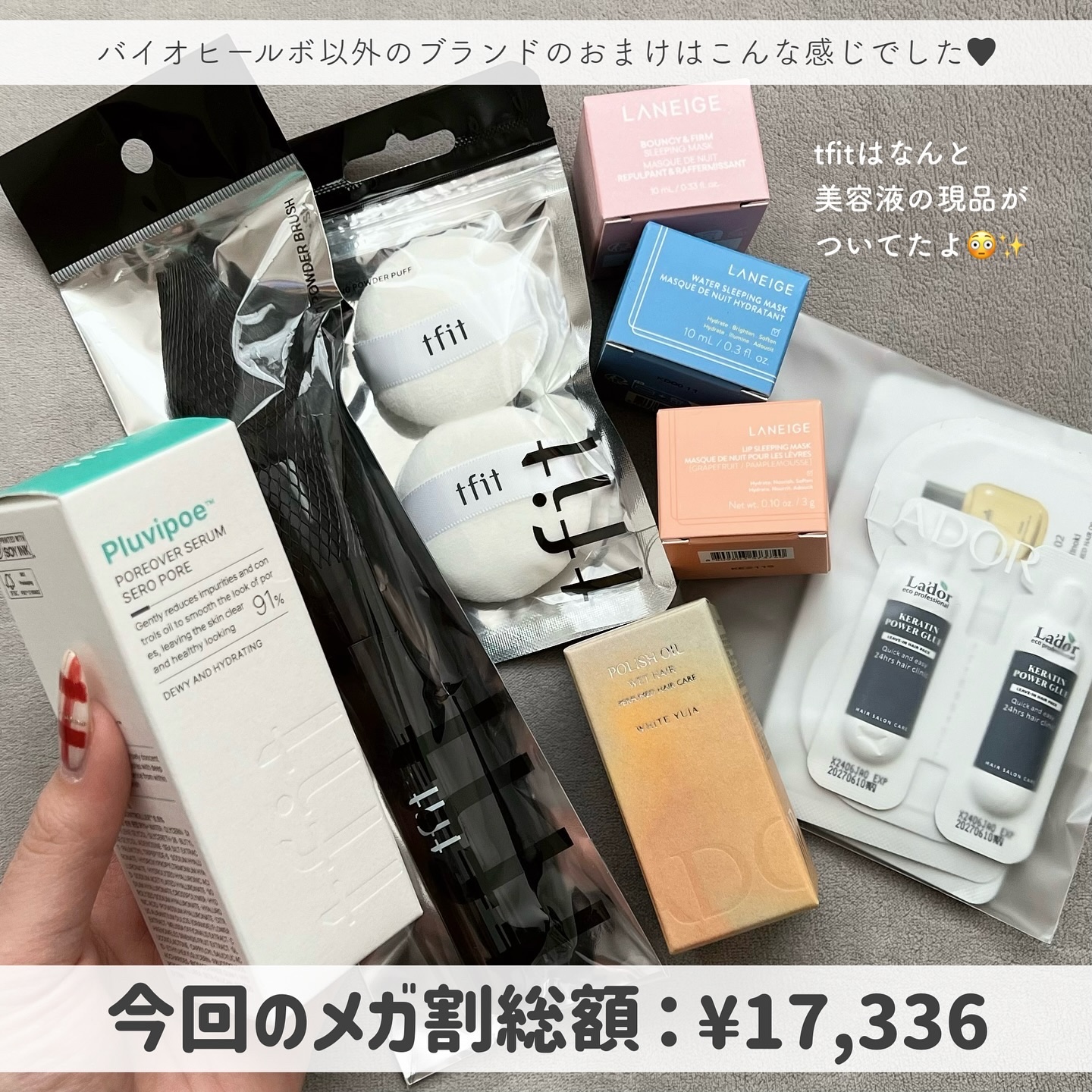 ポーチもついてきたわ~やった~😆 ブラシもふわふわでしっかりしてる! tfitさんのパウダー、ほんとにサラッサラになるから大好き… ホワイトとグリーンを持ってるので、今回はスキンベージュを追加してみた💡 そのうち全色制覇したいね… あとラベンダーとピンク。