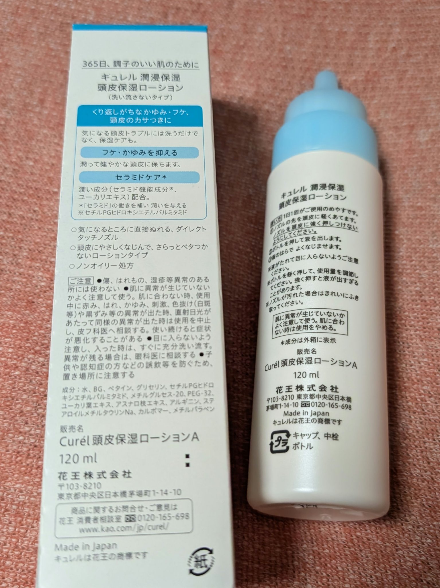 - 【敏感肌用】 くり返すかゆみ・フケ、カサつきに 敏感な頭皮こそ保湿ケアを。潤い成分(潤浸保湿セラミド機能成分*、ユーカリエキス)配合。「セラミド」の働きを補い、潤いを与えます。フケ・かゆみをおさえて、潤って健やかな頭皮に保ちます。 ●気になるところに直接ぬれる、ダイレクトタッチノズル。 ●頭皮にやさしくなじんで、さらっとベタつきにくいローションタイプ。 *セチルPGヒドロキシエチルパルミタミド 商品に関するお問い合わせ 受付時間9:00~17:00(土曜・日曜・祝日除く) *製品の誤飲・誤食など緊急の場合は、受付時間外でもお電話ください キュレル:0120-165-698