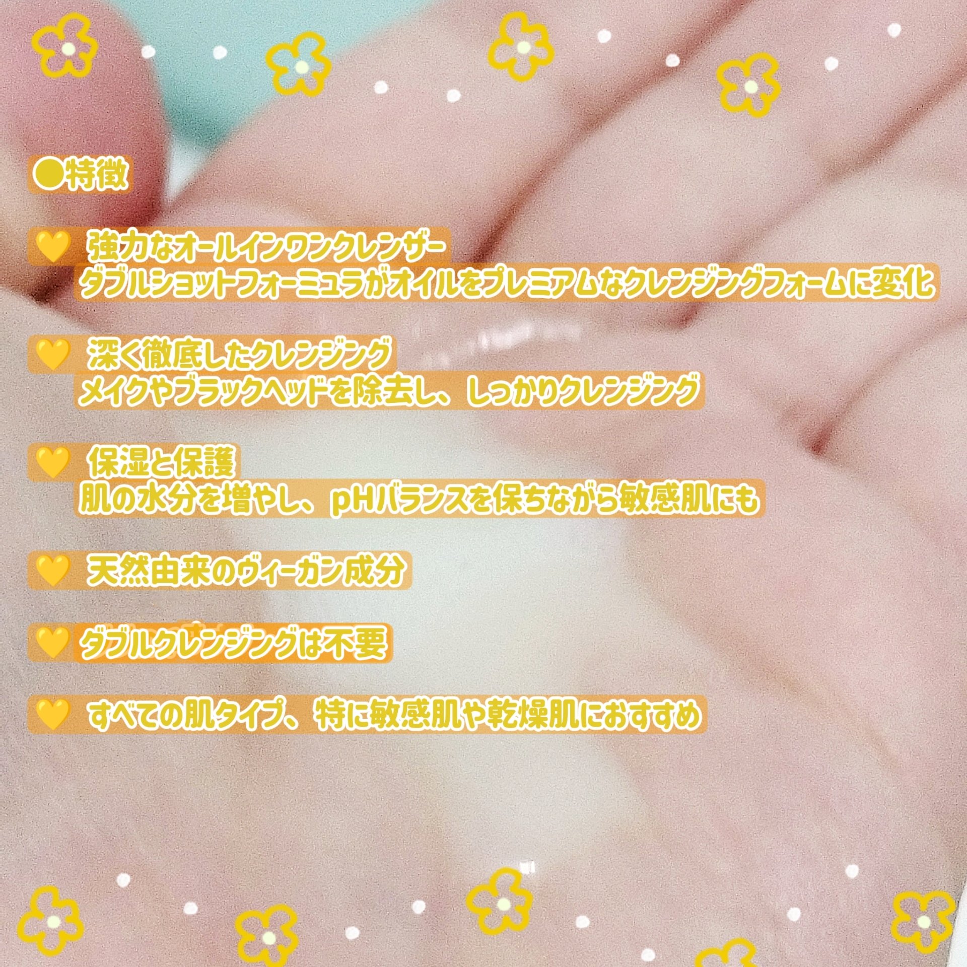 振って振ってオイルとフォームを一度に実現🫧 やさしいけれど強力な゛ビーガンクレンジング゛💫 ダブルショットフォーミュラがオイルをプレミアムなクレンジングフォームに変化させてくれるの😳 ダブルクレンジング不要なのも嬉しい🤍