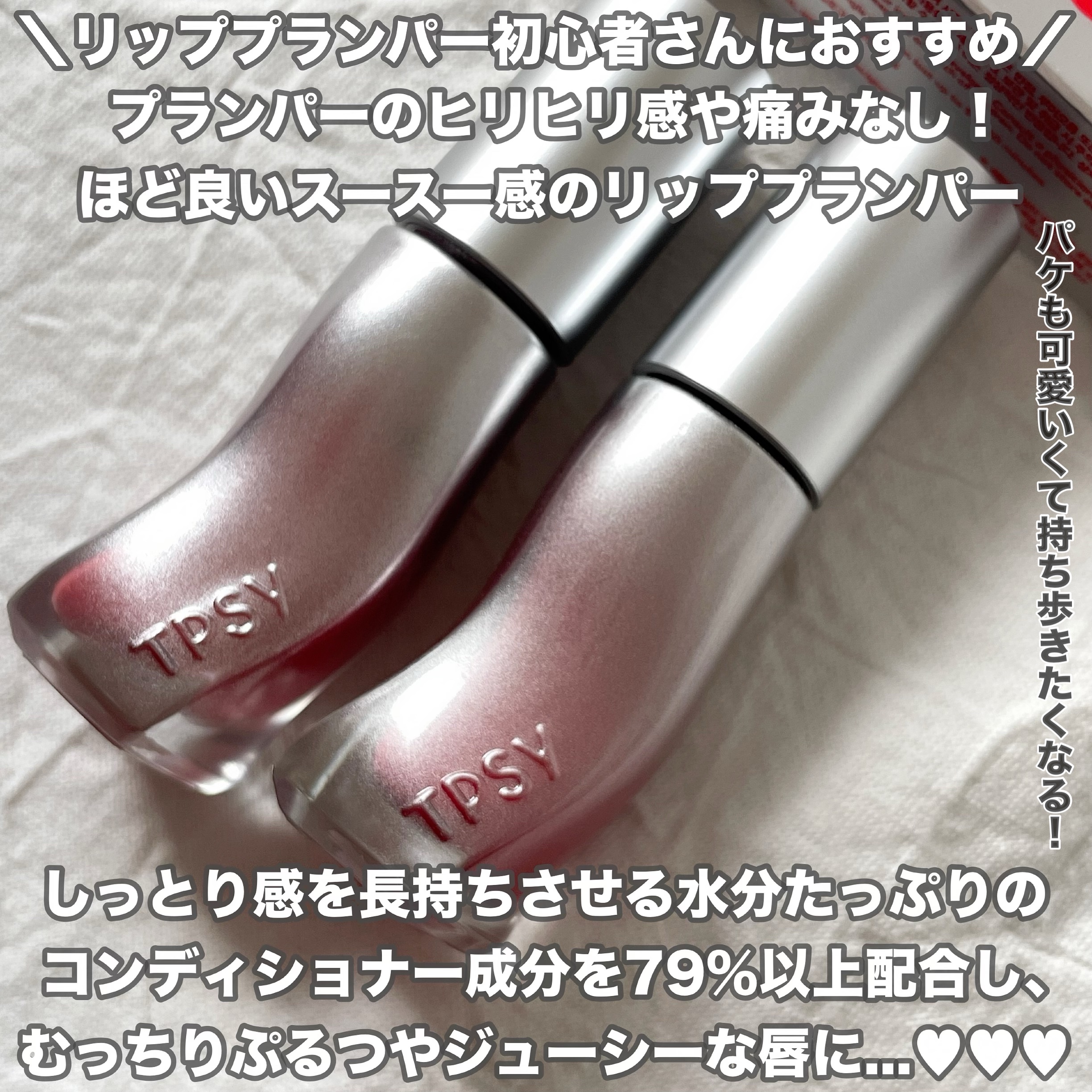 TPSYジューシーリッププランパー唇の魅力を最大限にぷるんとしたボリューム感を演出するティントプランパー◡̈公式をチェックしたらTPSYとはほろ酔いという意味があるみたいです◡̈ちゅるんとした水光リップで、プランパー効果もあってぷっくり仕上が...