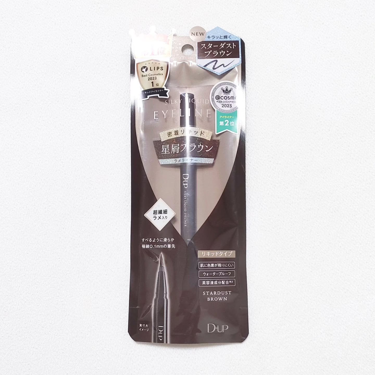 D-UP初のラメライナー💎💫🤎 キラッと繊細に輝く '星屑ブラウン' 🌠 透け感のあるダークブラウンをベースに星屑を散りばめたような繊細に輝くラメアイライナー シルバーや青の多彩ラメが目元にキラッと輝きをプラスします🩶💙✨ 速乾で描きやすく、発色も良いです♡ 新色のスターダストブラウンは、12/11発売です⌒✶⋆