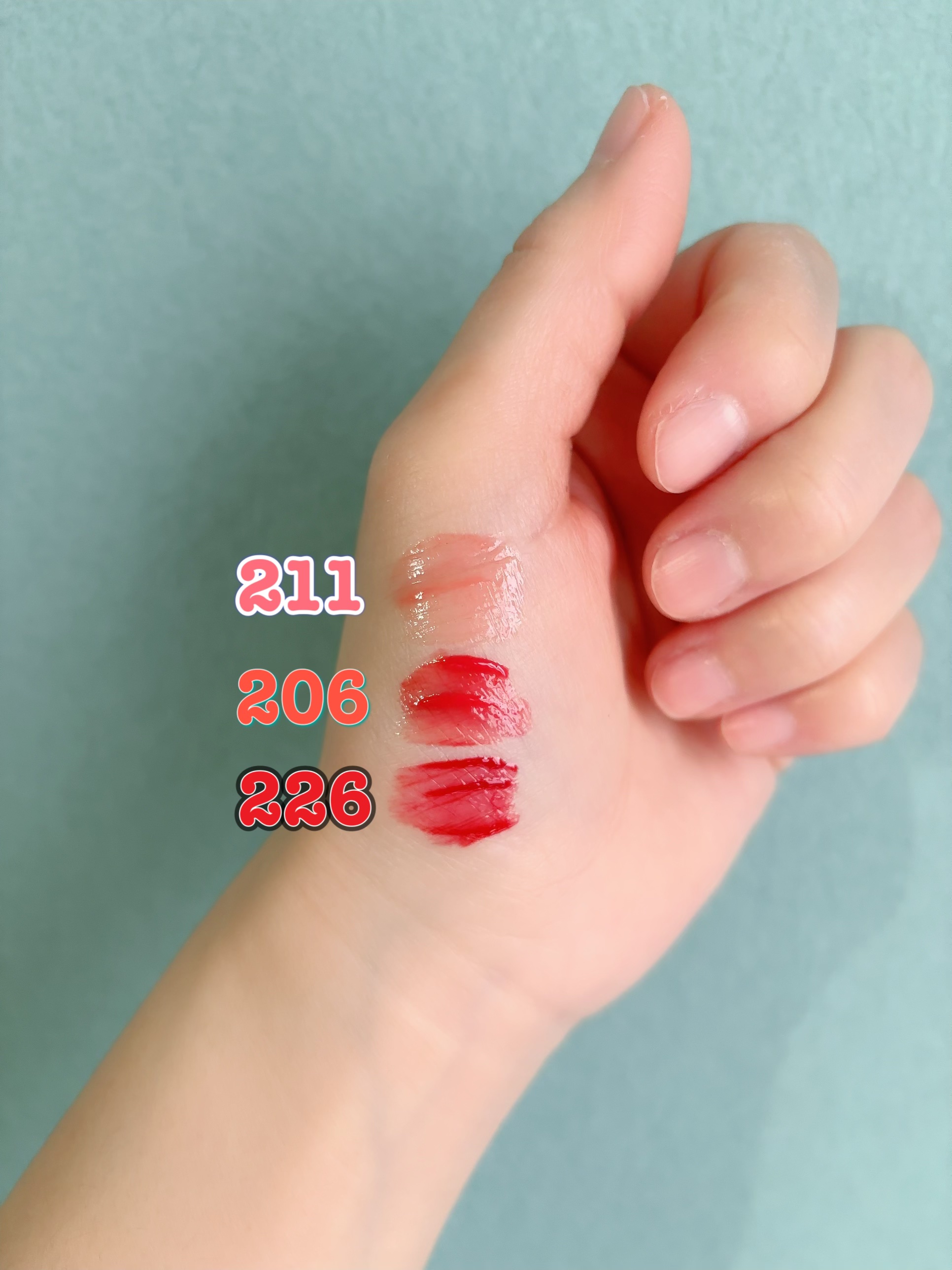 Dintoの大人気ティントがミニサイズのホリデー限定デザインで発売! ツリーのオーナメントをモチーフにしたパッケージがかわいい🎄 211は明るいピンクベージュ 206はピンク寄りコーラル 226は透け感あるレッドです。