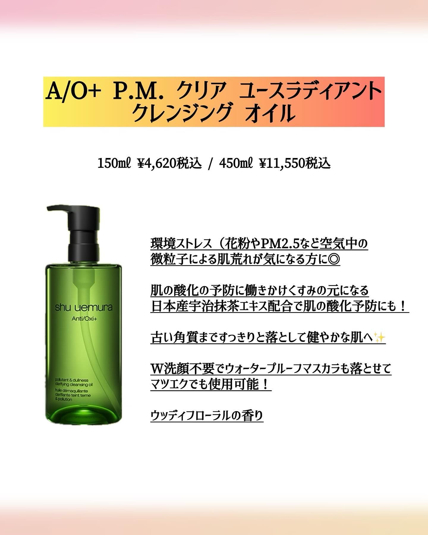 shu uemura A/O+ P.M.クリア ユース ラディアント クレンジング オイル | 5,060円 |
