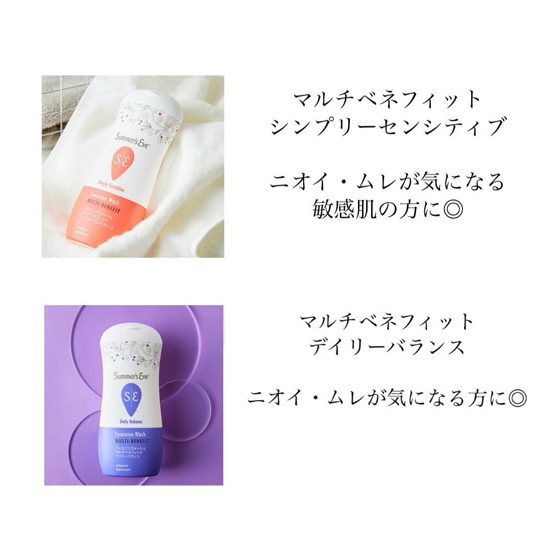 - 肌に優しい使い心地のデリケートゾーン用ボディウォッシュです。 デリケートな肌のphに合わせてつくられた弱酸性設計。 女性のデリケートな肌の古い角質や汚れによるくすみを洗い流し、うるおいのある肌へ導くボディウォッシュです。 デリケートゾーンの黒ずみ*やニオイ*、ムレ、カサツキなどに悩まれている方におすすめです。 * 古い角質や汚れによる 【日米で話題のデリケートゾーンケアブランド】 Summer’s Eve(サマーズイブ)は、アメリカで生まれたデリケートゾーンケアブランドです。 1972年から、フェムテック分野のパイオニアとして、世界30カ国以上で販売しています。日本での販売は2013年から。 アメリカ、日本の両国でデリケートゾーンケアの売上シェア1位*を獲得しました。 *IRI Market Advantageデータ 米国婦人衛生用品ブランド別金額シェア2020年12月調べ(12カ月計) *富士経済「美容家電・化粧雑貨マーケティングトレンドデータ2018」マーケットシェア、デリケートゾーン用洗浄・シート市場、金額ベース、2016年実績 【専門機関による各種テストを実施】 安全性使用テストを発売前にすべての製品で実施 ⑤パッチテスト*:専門機関監修のもと、一定期間使用し、肌にアレルギー症状が出ないかテスト済 ⑥エチケット効果テスト:サマーズイブを使用してエチケット対策の変化に関するテストを実施 *すべての方にアレルギーや刺激が起こらないわけではありません。