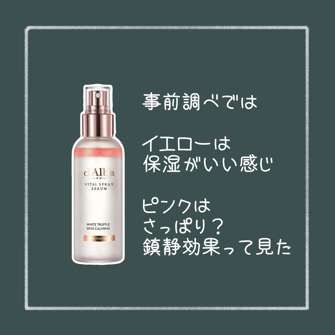 d’Alba(ダルバ)の人気ミストレポ!ホワイトトリュフファーストスプレーセラム&ホワイトトリュフバイタルスプレーセラムどちらも使い始めて半年近いですが、全然無くならないので私ももっと使っていこうと思います!オススメは断然50mlサイズですが...