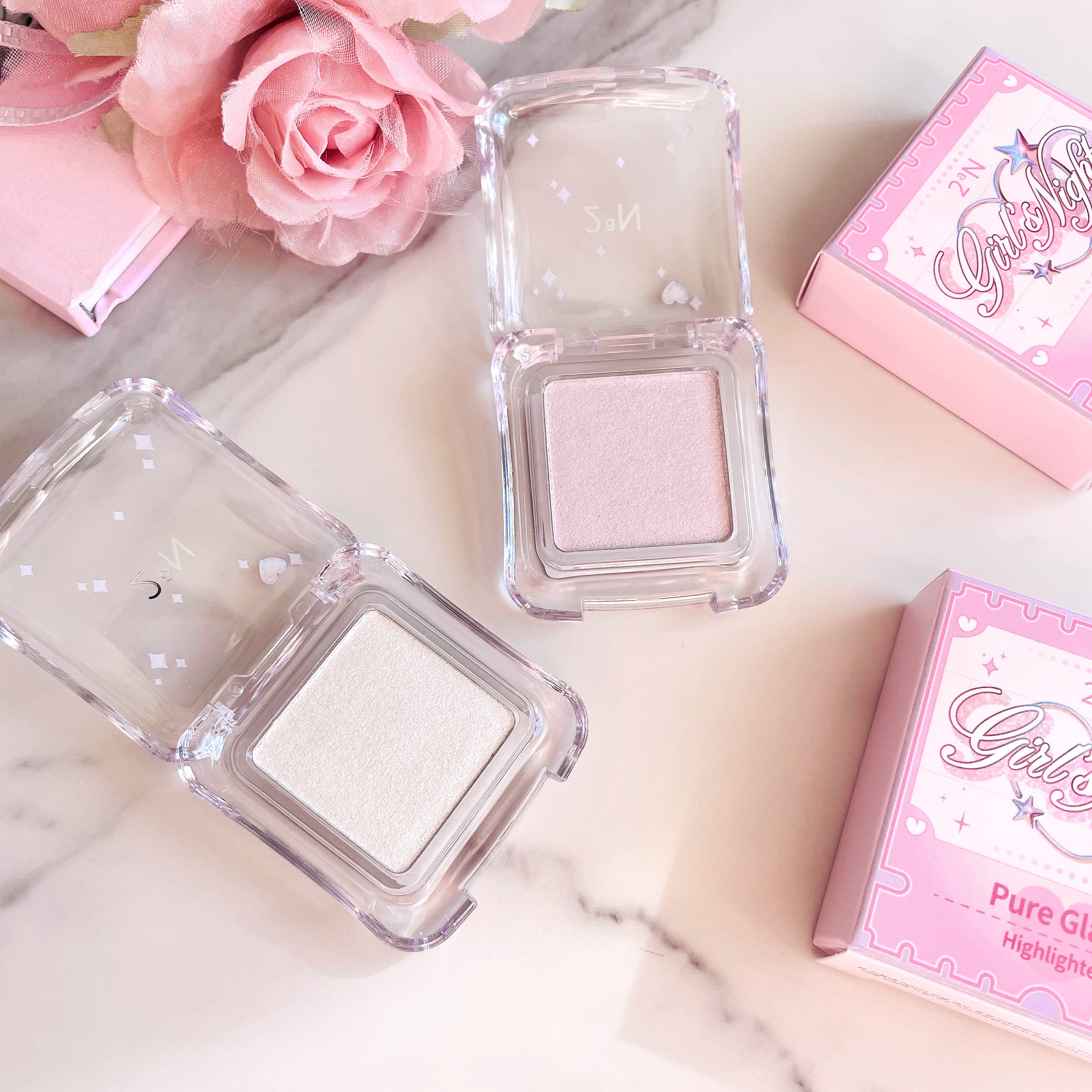 キラキラ透明感あふれる🥺 落ち着いたカラーで毎日使いに◎ 期待通りの発色で可愛すぎる! パッケージも可愛い🤍 2aN Better Me Eye Palette #09 Dreamcatcher ・2aN Pure Glash Highlighter #WH01 Frosty ・2aN Dual Cheek #09 Heart Balloon