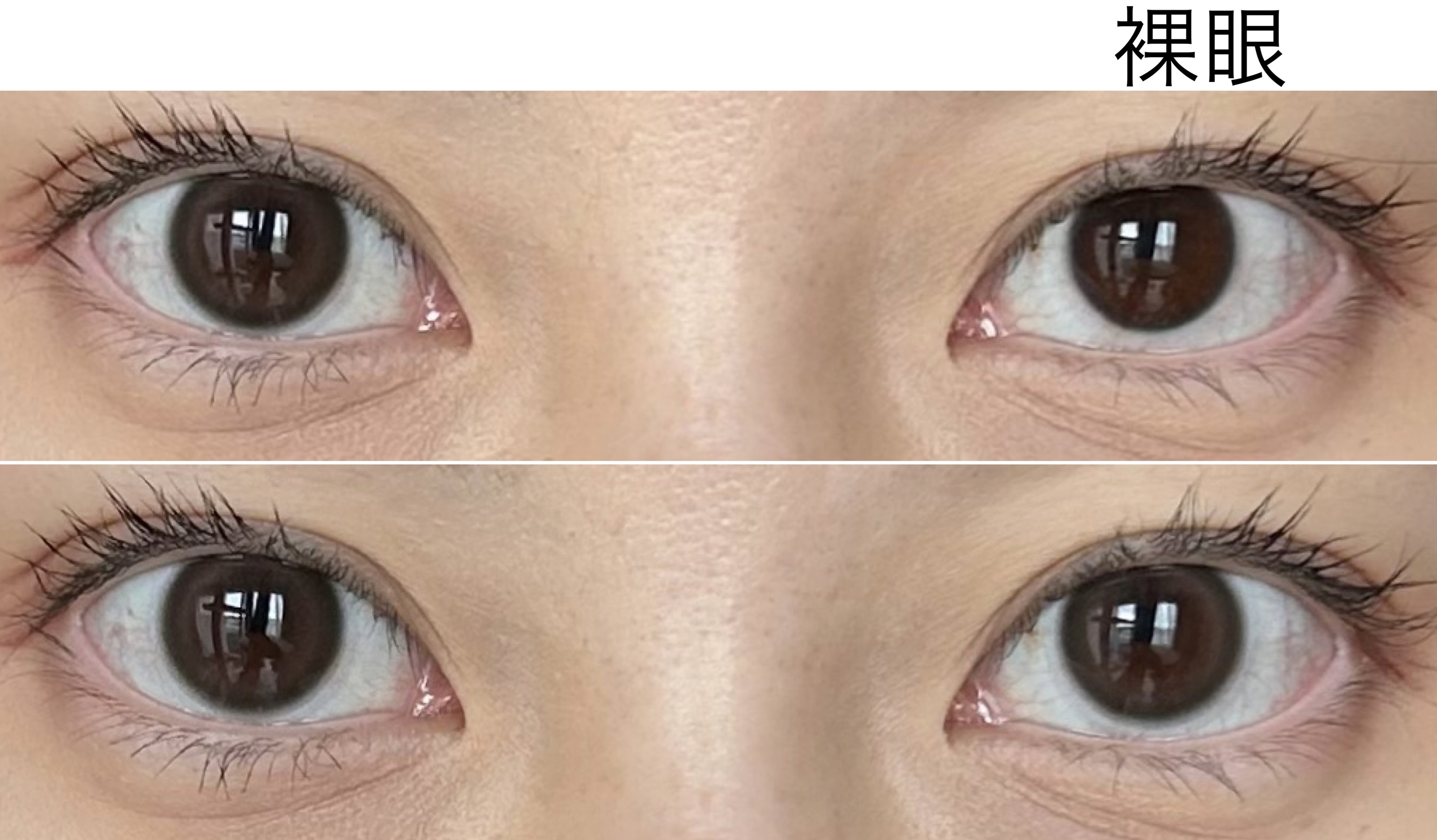 中の本当にココアみたいなくすみブラウンカラーが他には無い感じでじゅわーっとした発色が最高ですね 中のカラーが明るめでリング状になってると結構派手な感じになりやすいんですが、このじゅわっとした感じのおかげでそこまで派手だったりキツくは見えないです きゅるっと丸い目に見えて本当に可愛らしい印象になりつつ立体感がしっかり出て、写真盛れも現実盛れも間違いない気がします