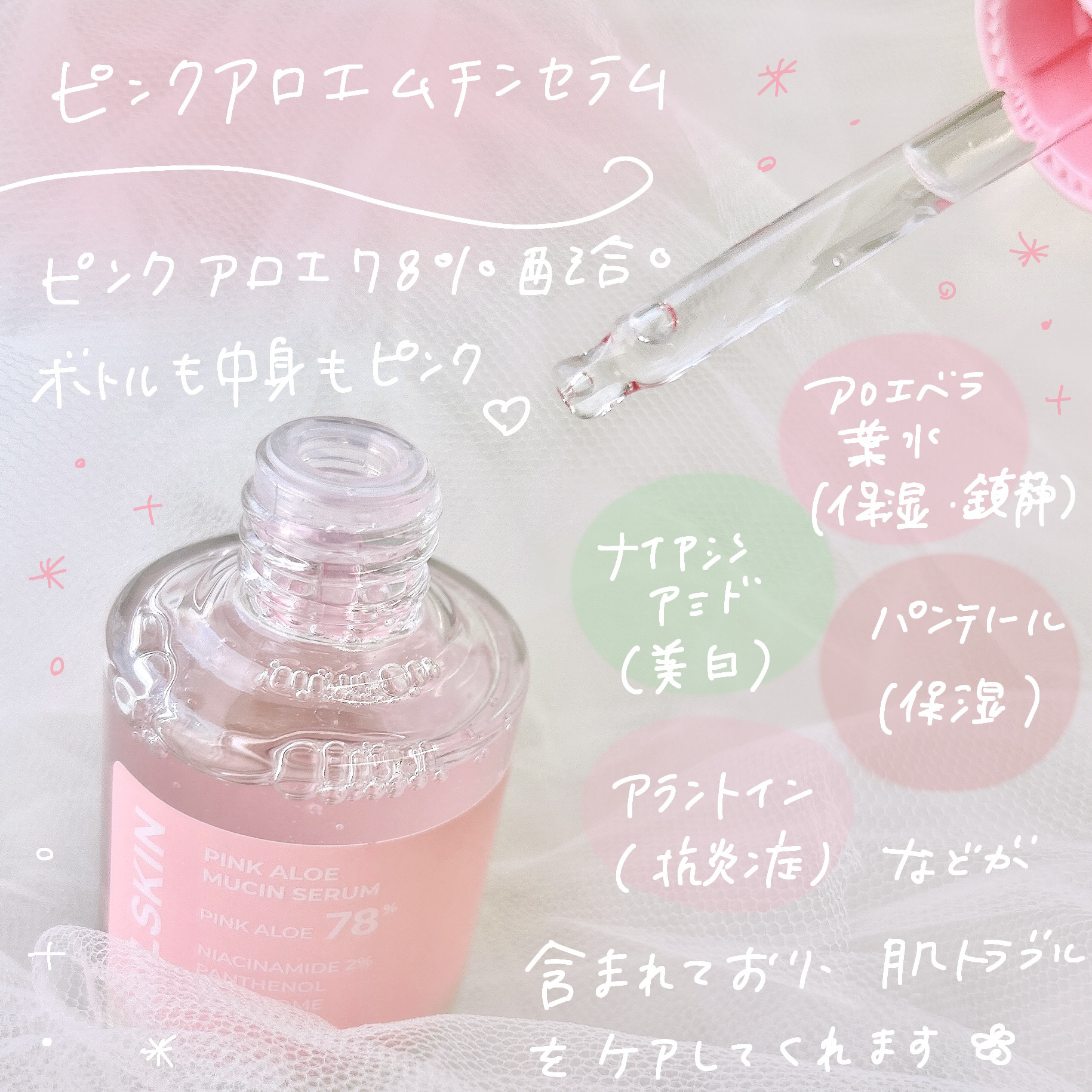 一般のアロエより197%も効果が高いピンクアロエを78%配合。肌トラブルをケアしながら肌バリア機能をサポートしてくれるセラムです。 とろみがあり糸を引くテクスチャー。つるんとした感触で伸びよく、肌なじみは早いと感じました。しっとり、べたつかない使い心地です😊 現在開催中のメガ割対象商品です✨気になった方はQoo10へ♪