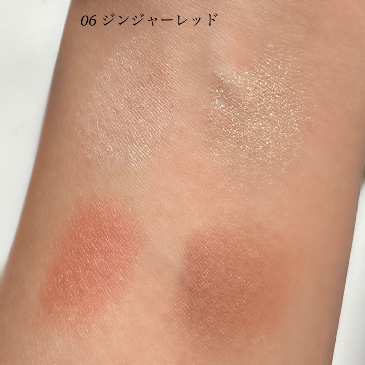 - <01 オレンジアーモンド> タルク、ジメチコン、ワセリン、窒化ホウ素、ホホバ種子油、(HDI/PPG/ポリカプロラクトン)クロスポリマー、炭酸Ca、水添ポリイソブテン、(HDI/トリメチロールヘキシルラクトン)クロスポリマー、リンゴ酸ジイソステアリル、メタクリル酸メチルクロスポリマー、1,2-ヘキサンジオール、イソステアリン酸グリセリズ、イソステアリン酸ソルビタン、エチルヘキサン酸セチル、ダイマージリノール酸水添ヒマシ油、オレイン酸ソルビタン、メチルパラベン、ヒドロキシアパタイト、トコフェロール、セラミドNP、水、BG、モモ葉エキス、ヒアルロン酸Na、(+/-)マイカ、酸化チタン、酸化鉄、ホウケイ酸(Ca/Al)、ホウケイ酸(Ca/Na)、シリカ、水酸化Al、酸化スズ、赤226 <02 ティーローズ> タルク、ジメチコン、ワセリン、窒化ホウ素、ホホバ種子油、(HDI/PPG/ポリカプロラクトン)クロスポリマー、炭酸Ca、水添ポリイソブテン、(HDI/トリメチロールヘキシルラクトン)クロスポリマー、リンゴ酸ジイソステアリル、メタクリル酸メチルクロスポリマー、1,2-ヘキサンジオール、イソステアリン酸グリセリズ、イソステアリン酸ソルビタン、エチルヘキサン酸セチル、ダイマージリノール酸水添ヒマシ油、オレイン酸ソルビタン、メチルパラベン、ヒドロキシアパタイト、トコフェロール、セラミドNP、水、BG、モモ葉エキス、ヒアルロン酸Na、(+/-)マイカ、酸化チタン、酸化鉄、ホウケイ酸(Ca/Al)、ホウケイ酸(Ca/Na)、シリカ、グンジョウ、水酸化Al、赤226、酸化スズ <03 ウィンターグレイ> タルク、ジメチコン、合成フルオロフロゴパイト、リンゴ酸ジイソステアリル、シリカ、ラウロイルリシン、スクワラン、ワセリン、イソステアリン酸水添ヒマシ油、(ジメチコン/ビニルジメチコン)クロスポリマー、セスキイソステアリン酸ソルビタン、デヒドロ酢酸Na、(ジビニルジメチコン/ジメチコン)コポリマー、硫酸Ba、フェノキシエタノール、トリ(カプリル酸/カプリン酸)グリセリル、トコフェロール、クロルフェネシン、(C12,13)パレスー23、ポリグリセリルー3ポリジメチルシロキシエチルジメチコン、(C12,13)パレスー3、ヒアルロン酸Na、セラミドNP、メタクリル酸メチルクロスポリマー、水、BG、モモ葉エキス、(+/-)マイカ、酸化チタン、酸化鉄、ホウケイ酸(Ca/Al)、グンジョウ、銀、水酸化Al、カオリン、酸化スズ、赤226 <04 イノセントピーチ> タルク、合成フルオロフロゴパイト、ジメチコン、シリカ、リンゴ酸ジイソステアリル、ラウロイルリシン、スクワラン、硫酸Ba、ワセリン、イソステアリン酸水添ヒマシ油、セスキイソステアリン酸ソルビタン、(ジメチコン/ビニルジメチコン)クロスポリマー、メタクリル酸メチルクロスポリマー、デヒドロ酢酸Na、(ジビニルジメチコン/ジメチコン)コポリマー、フェノキシエタノール、トリ(カプリル酸/カプリン酸)グリセリル、トコフェロール、クロルフェネシン、ポリグリセリルー3ポリジメチルシロキシエチルジメチコン、(C12,13)パレスー23、(C12,13)パレスー3、ヒアルロン酸Na、セラミドNP、水、BG、モモ葉エキス、(+/-)酸化チタン、マイカ、酸化鉄、ホウケイ酸(Ca/Al)、グンジョウ、銀、水酸化Al、カオリン、赤226、酸化スズ <05 ピンクスワン> タルク、ジメチコン、トリエチルヘキサノイン、(HDI/PPG/ポリカプロラクトン)クロスポリマー、イソステアリン酸水添ヒマシ油、ワセリン、水添ポリイソブテン、リンゴ酸ジイソステアリル、窒化ホウ素、1,2-ヘキサンジオール、ジフェニルシロキシフェニルトリメチコン、(HDI/トリメチロールヘキシルラクトン)クロスポリマー、イソステアリン酸ソルビタン、ダイマージリノール酸水添ヒマシ油、炭酸Ca、メタクリル酸メチルクロスポリマー、ナイロン-12、ヘキサ(ヒドロキシステアリン酸/ステアリン酸/ロジン酸)ジペンタエリスリチル、メチルパラベン、トコフェロール、セラミドNP、水、BG、モモ葉エキス、ヒアルロン酸Na、(+/ー)マイカ、酸化チタン、合成フルオロフロゴパイト、ホウケイ酸(Ca/Al)、酸化鉄、シリカ、ホウケイ酸(Ca/Na)、グンジョウ、赤226、酸化スズ、水酸化Al <06 ジンジャーレッド> タルク、ジメチコン、トリエチルヘキサノイン、(HDI/PPG/ポリカプロラクトン)クロスポリマー、イソステアリン酸水添ヒマシ油、ワセリン、水添ポリイソブテン、リンゴ酸ジイソステアリル、窒化ホウ素、1,2-ヘキサンジオール、ジフェニルシロキシフェニルトリメチコン、(HDI/トリメチロールヘキシルラクトン)クロスポリマー、イソステアリン酸ソルビタン、ダイマージリノール酸水添ヒマシ油、炭酸Ca、メタクリル酸メチルクロスポリマー、ナイロン-12、ヘキサ(ヒドロキシステアリン酸/ステアリン酸/ロジン酸)ジペンタエリスリチル、メチルパラベン、トコフェロール、セラミドNP、水、BG、モモ葉エキス、ヒアルロン酸Na、(+/ー)マイカ、酸化鉄、酸化チタン、合成フルオロフロゴパイト、ホウケイ酸(Ca/Al)、ホウケイ酸(Ca/Na)、シリカ、アルミナ、グンジョウ、酸化