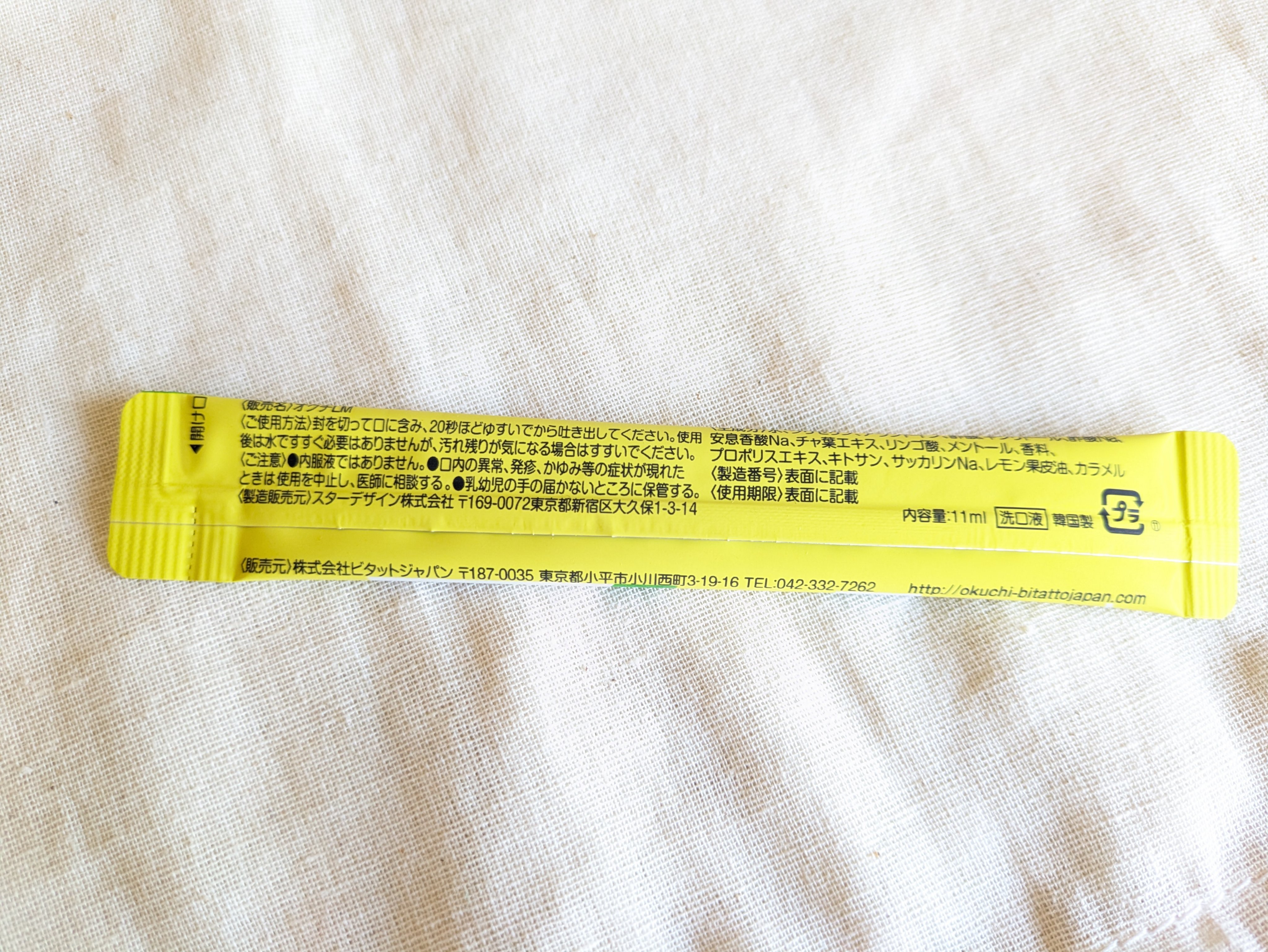 - ●爽やかなレモンフレーバー ●口をゆすいだ後に自分の口の中の汚れが見えて驚き ●20秒ゆすいで速攻リフレッシュ ●携帯に便利なスティックタイプ