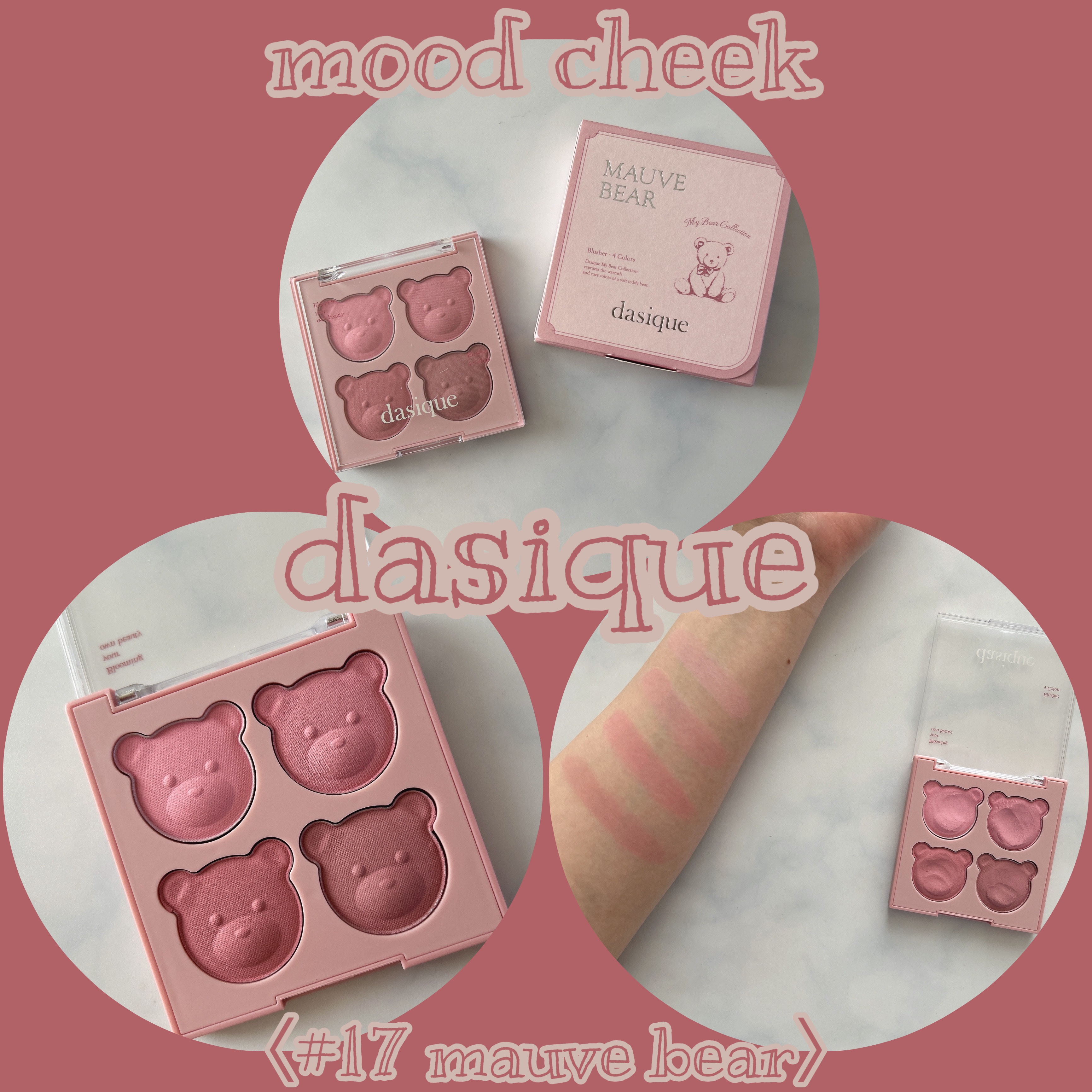 \パケ買い不可避のくまチーク🐻/♡dasiqueBlendingMoodCheek17.MauveBear柔らかいクールモーヴベアが両頬をふんわり包み込むゼリーチークパレット🎨クマの形が可愛いdasiqueの4色チーク。トーンが異なる4色のピ...