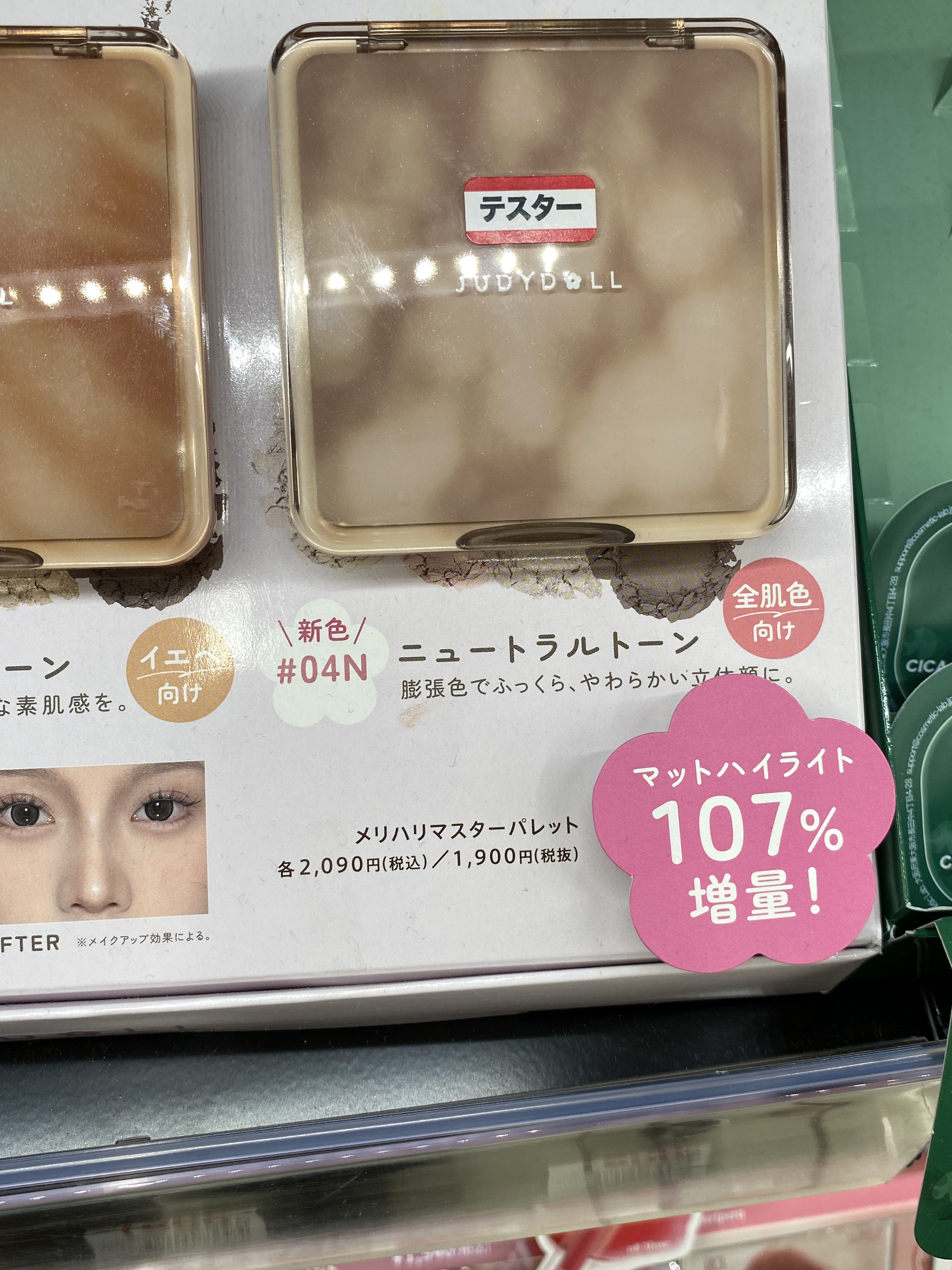 メイクレシピ常連でバズっている JUDYDOLL メリハリマスターパレット¥2,090 マットハイライトが目的で購入したので容量多くてうれしい🌟 マットハイライトの2色の色の違いは塗ってみるとほんのりと感じるくらいです! カラー別の使用例として公式サイトの写真を載せているので参照ください🙇🏻♀️
