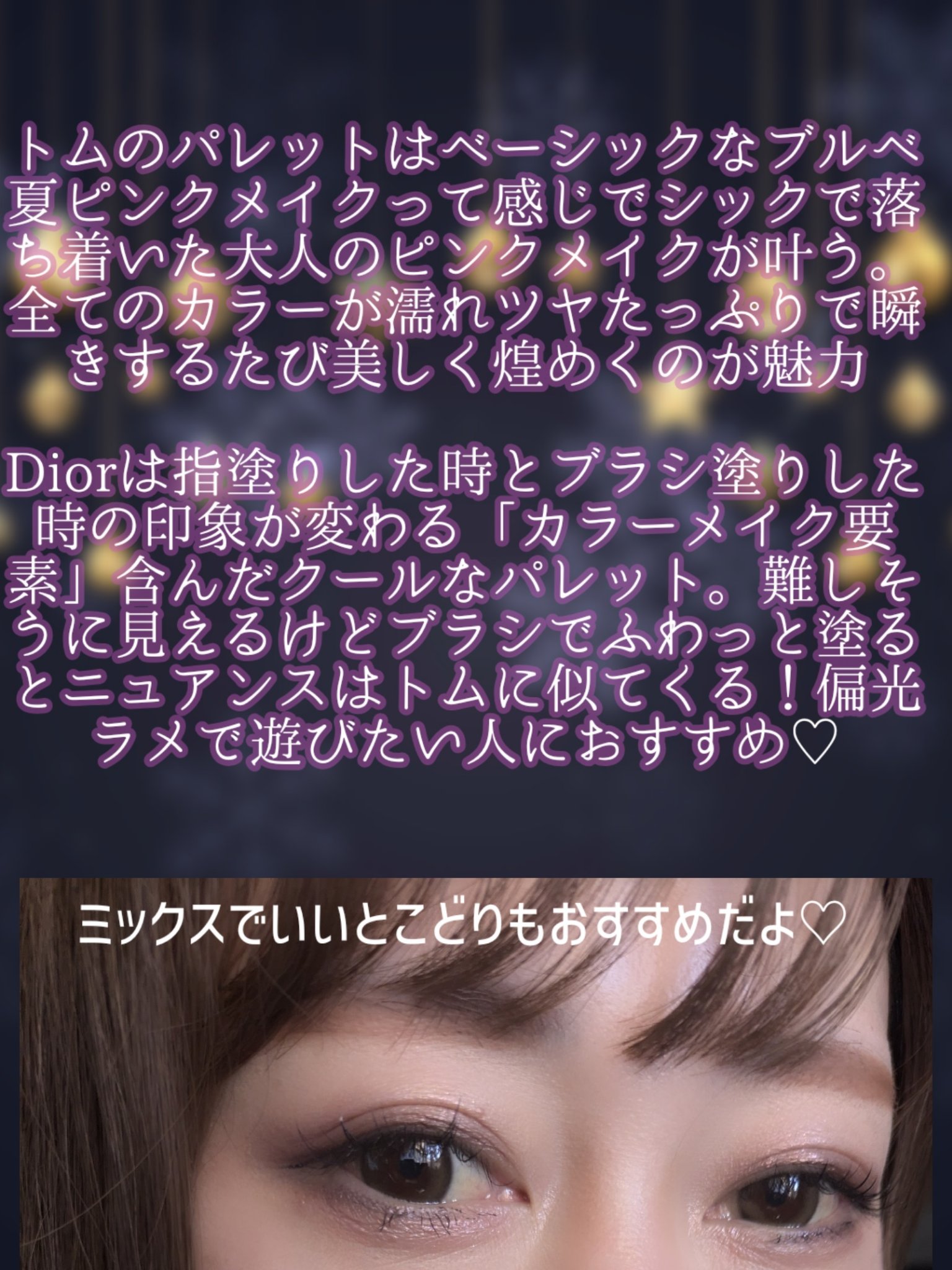 ディオールショウ サンク クルール クリスマス コレクション 2024 限定品 863ソワール ドゥ バル DIORのホリデーパレットを2種類使ってメイク💗 今年のホリデーも本当可愛すぎて使うたびに好きが増してる🥹💓 バックステージ ホリデー 限定色 004セレスティアル パープル