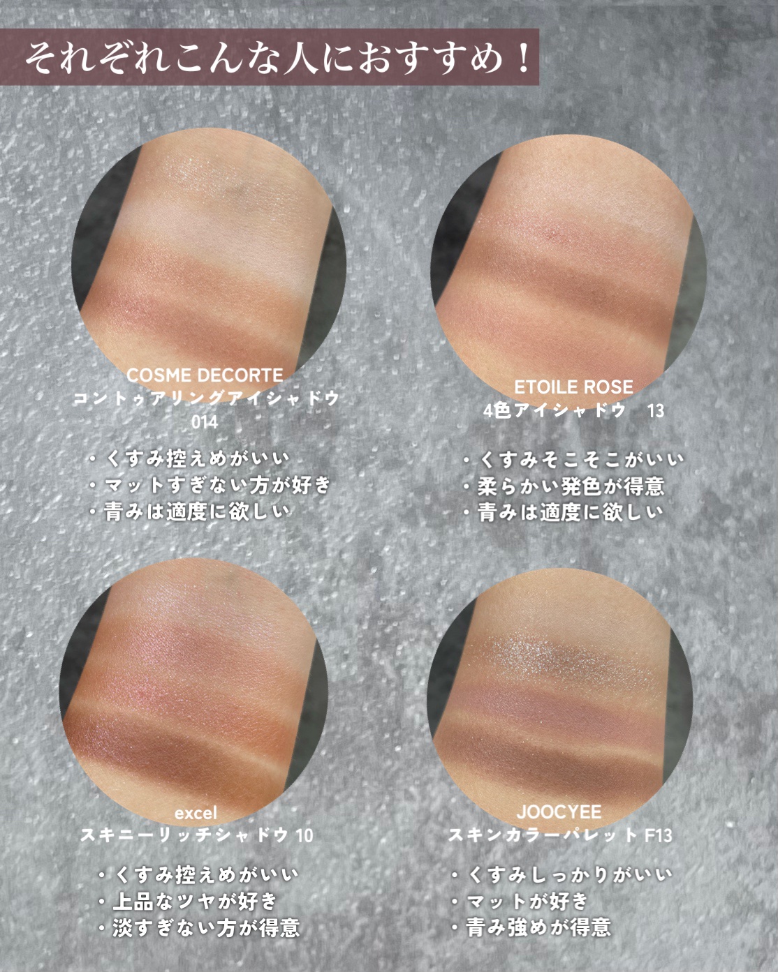 | 3つの異なる質感からなる4色パレットで、使い方によって雰囲気も質感も変わっていきます✨ | 詳細を見る |