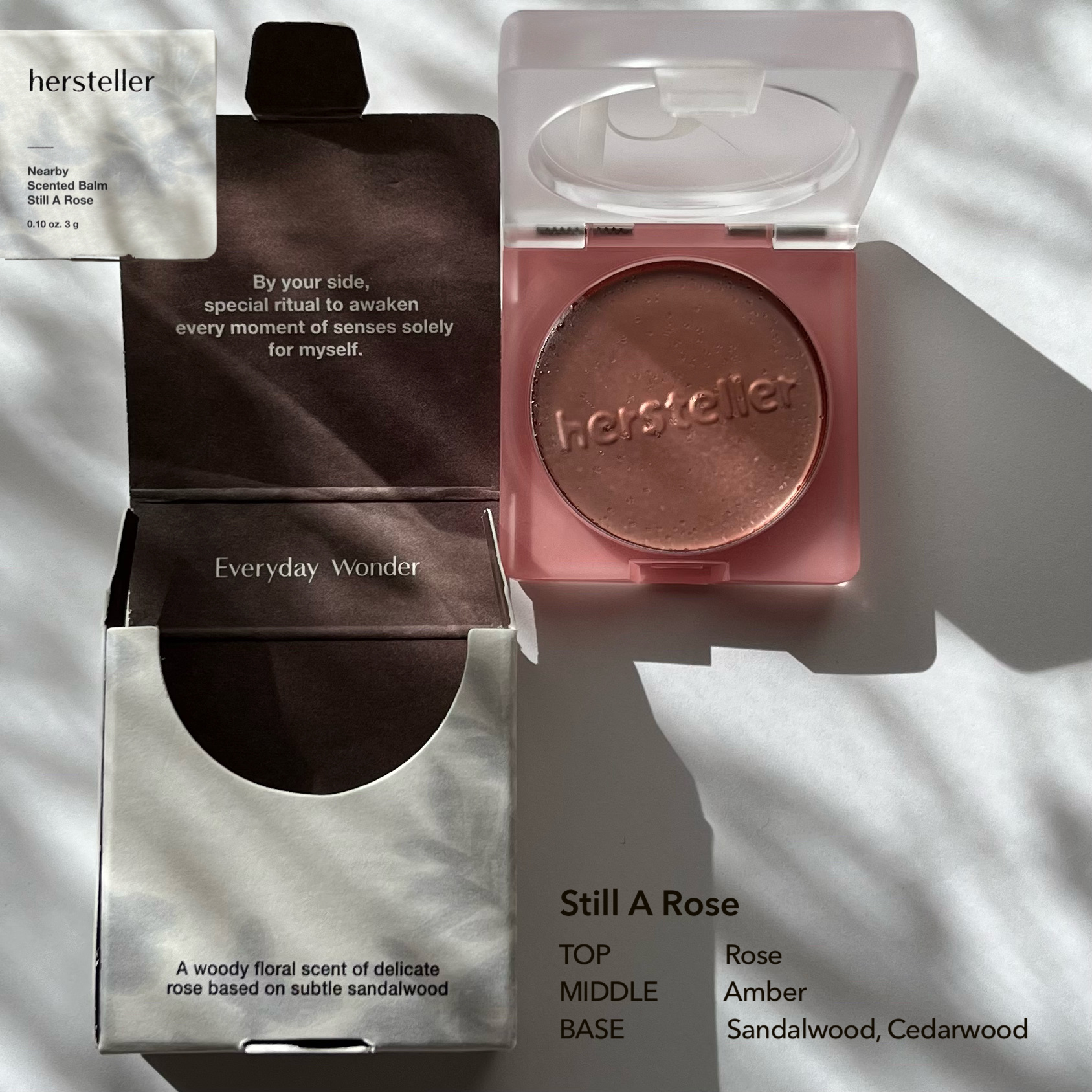 肌に優しく浸透する透明なメルティングフォーミュラ。 ベタつかずいい香りがふんわり広がる🌿 暖かい日差しの平和と、安らぎを込めたシトラスウッディの香り🍊 控えめなローズにほのかなサンダルウッドが加わり、落ち着いたウッディフローラルの香り🥀
