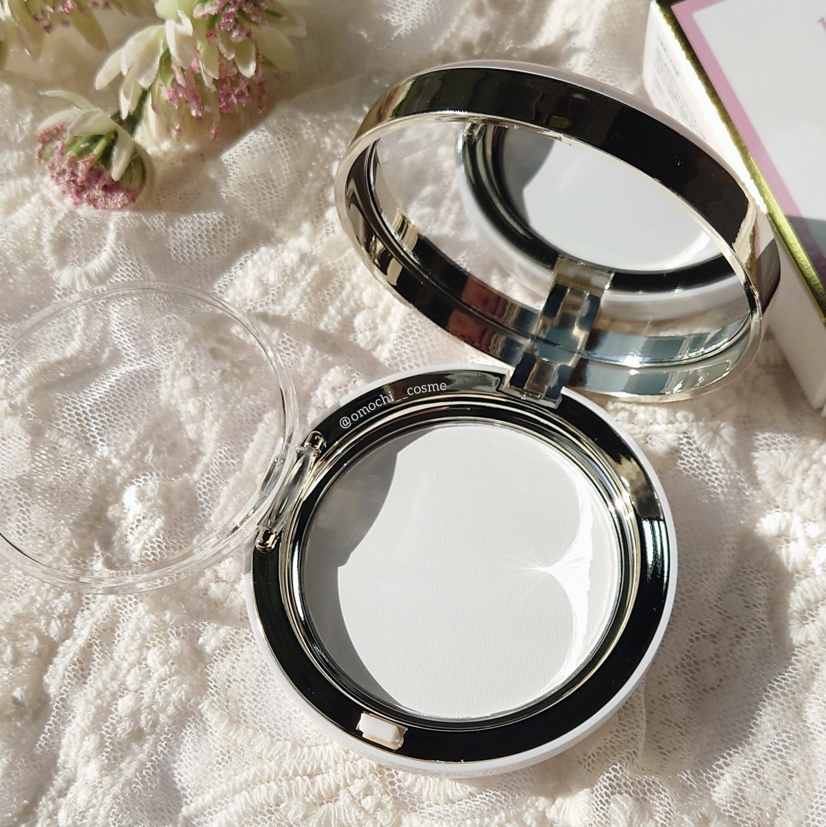 - きめ細かい粒子がテカリを抑えてふんわりなめらかな肌を演出。 外出先でもメイク直し可能なミラー付きパクトタイプ。