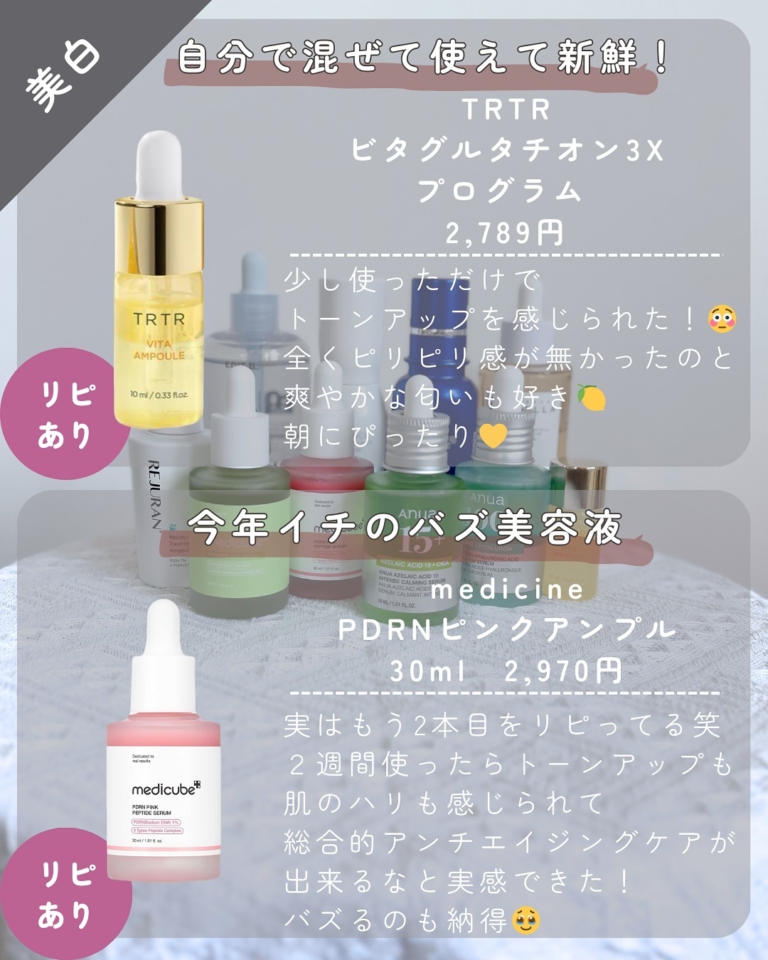 PDRN✊🏻🤍 細胞を修復することで肌の若返りを促進してくれるっていうアンチエイジングにめちゃくちゃ優れた成分だからこそ各メーカーからではじめてて迷っちゃうよね😮💨 毎日忙しいワーママが大好きな韓国コスメを買い漁りながら時短でもできるスキンケアを追求中🔍🫧🤍 明日からでも取り入れて若返ろうぜ!!!!笑