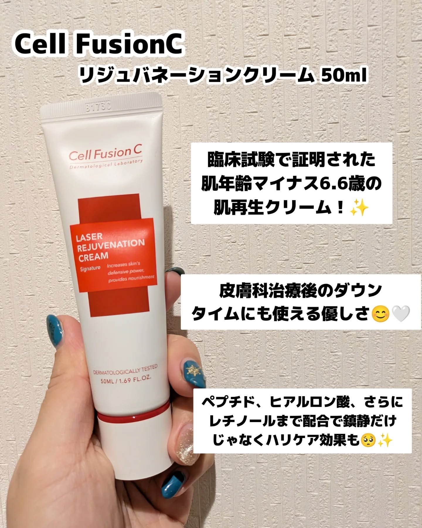 韓国皮膚科発のダーマコスメブランド🇰🇷 実際に美容施術後でも使われている肌再生クリーム! 5種類のペプチド、ヒアルロン酸、パンテノール、レチノールなどたくさんの保湿成分が配合されています✨ 弱った肌バリアを強化し、肌の若返り*をサポートするアンチエイジング*ケアまで効果的だそう✨