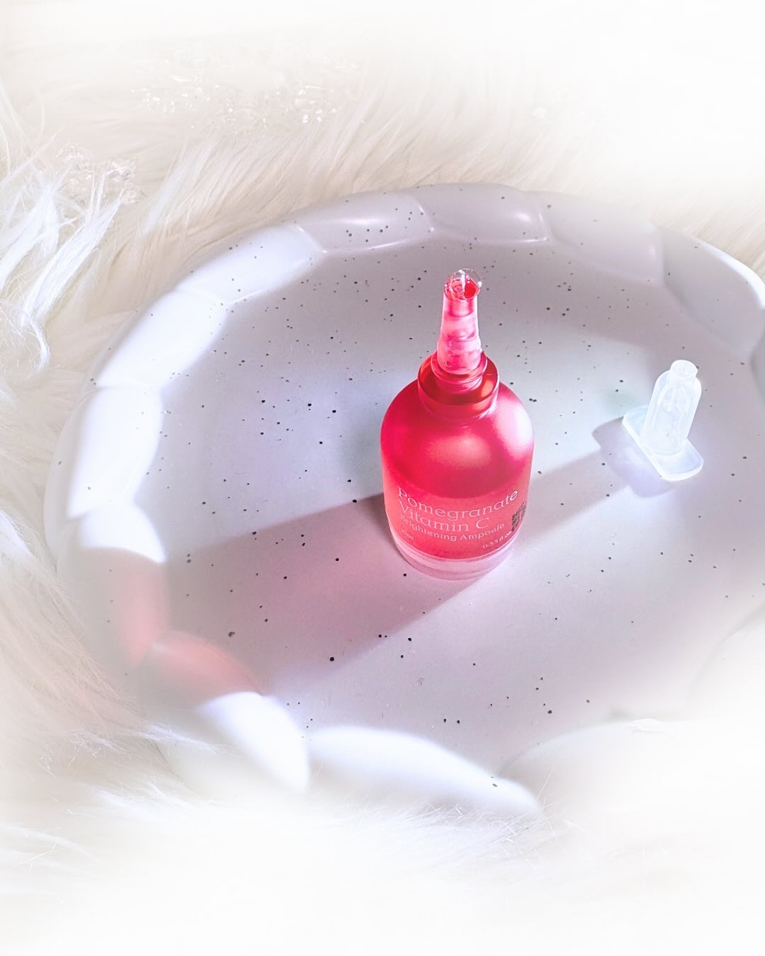ザクロエキスと高濃縮ビタミンC配合のアンプル。低刺激フォーミュラで、乾燥によるくすみやシミにおすすめの美白ケアアンプル。 膜がはったようにピタっと張り付くアンプルで気になる部分にピンポイントで塗布しやすいです。 ベタベタしないのにしっとりするし、一週間くらい使ってますがいつもより乾燥によるくすみが気にならないかも❤️