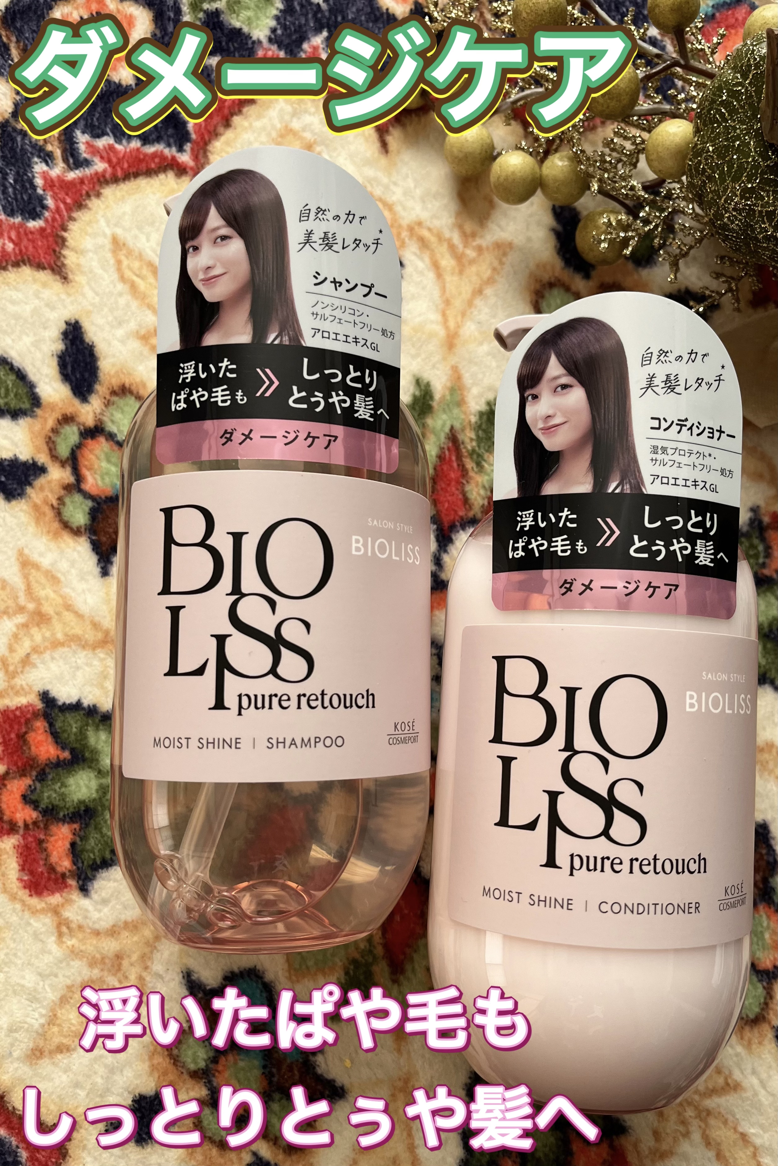 自然の力で美髪レタッチ*!傷んで浮いたぱや毛もしっとりとぅや髪へみちびくダメージケア 使うたびやみつきになるペア&ミュゲの香り。 シャンプーは泡立ち良くいい香り。コンディショナーはクリームぽいテクスチャーでなじみやすい。