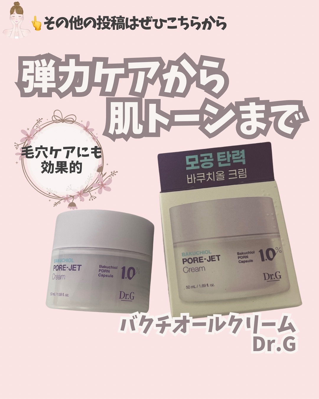 高濃度バクチオールPDRNカプセルがはじけてハリ弾力ケア。なめらか・軽いテクスチャーで油っぽくないので朝も使えるのが嬉しい✨ LeoJさんとの共同開発! Dr.G PDRNバクチオールポアジェットクリーム