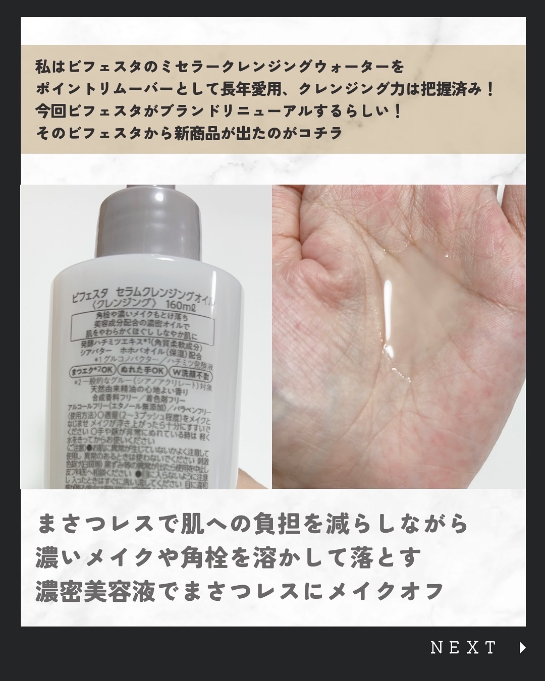 厚みのあるなめらかテクスチャーで摩擦少なく優しく洗えるよ☺️ 濃いめのメイクも優しく撫でるだけで浮いてきてくれるのが頼もしい💪 W洗顔不要なのも忙しい日に助かるなー✨