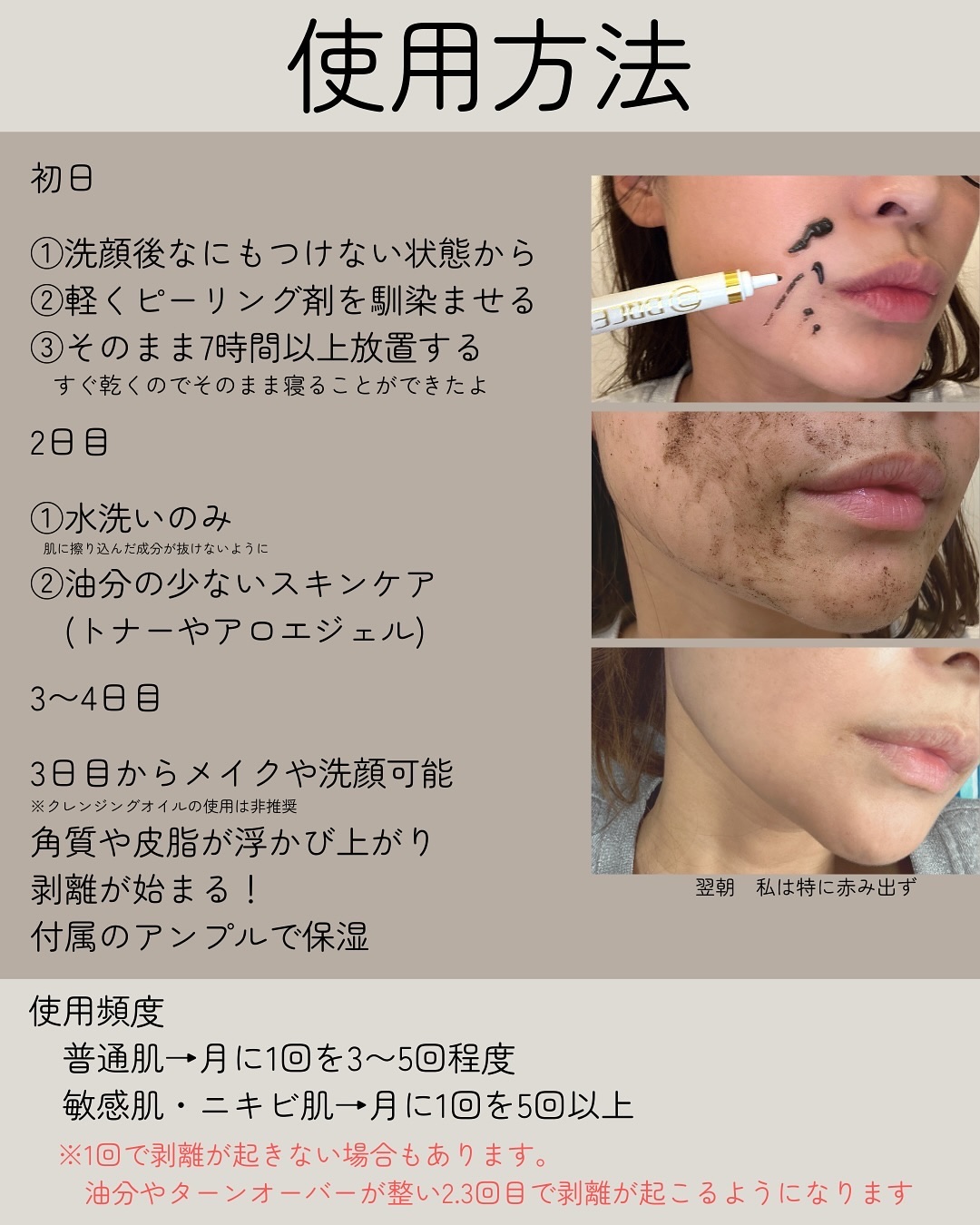 韓国ブランド「BQCELL」のダーマスキンピーリングは、ブランド累計販売数120万個突破の大人気商品✨楽天ランキングでは1位を獲得したこともあり、人気すぎて売り切れ続出だそう👀❕ 剥離ありのため、赤みやひりつきが2,3日続きますが、その分効果はしっかり実感✨エステサロンのハーブピーリングが安く、セルフでできちゃうアイテムです ダウンタイムを乗り越えた肌に感動するので、一度試すとまたやりたくなるピーリング❕自宅で本格的なピーリングを試してみたい方