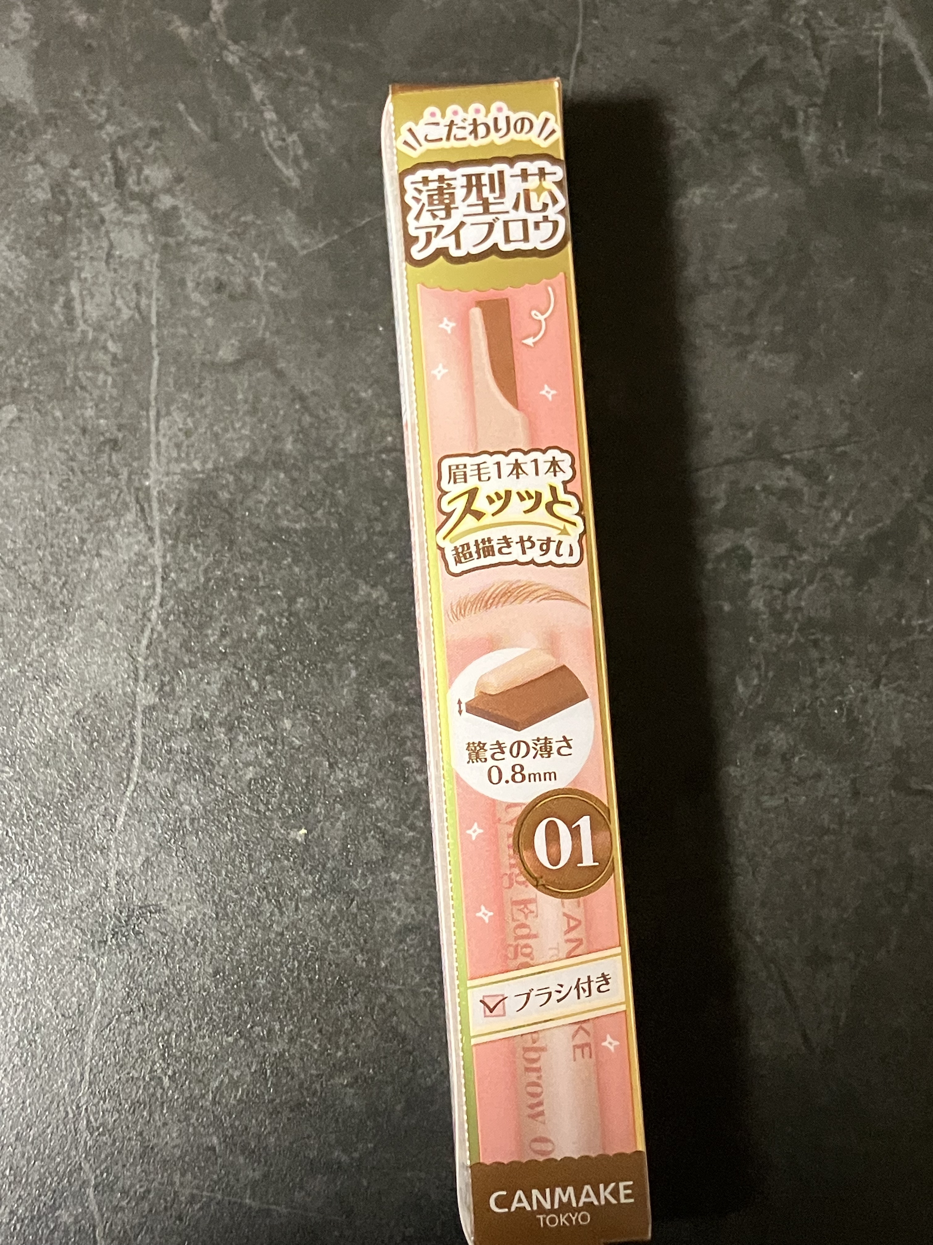 なんと0.8mmの薄型芯!?? キャンメイク スタイリングエッジアイブロウ 01 ナチュラルブラウン ¥770 めちゃくちゃ細くて細かいところも綺麗に描ける! 厚さは極薄だけど芯幅は4.0mmあるので安定して描けるよ! 水・汗・皮脂・こすれに強くて消えやすい眉尻もしっかりキープ♡ 反対側にはスクリューブラシも付いてるよ!