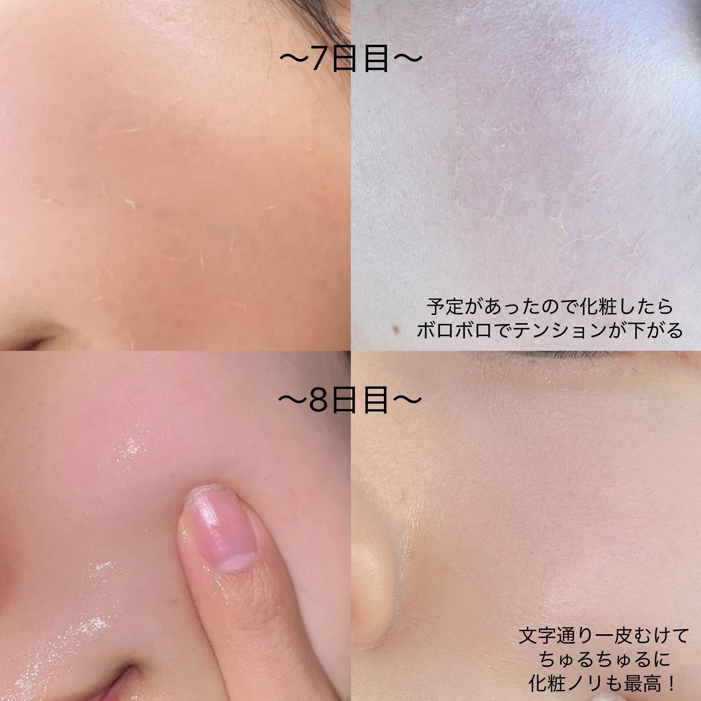 即効性のあるスキンケアしてたり長期休みがあるからダウンタイムあってもしっかり効果の出るスキンケアする方色々いると思うんだけど✨ 私は剥離ありのハーブピーリング BQCELL ダーマスキンピーリング @gangnam_doll に挑戦してみたよー!! 赤みや皮剥けがあるから予定がある方は要注意🫨💦 だけどその後のツヤ肌は感動的みたい🥰