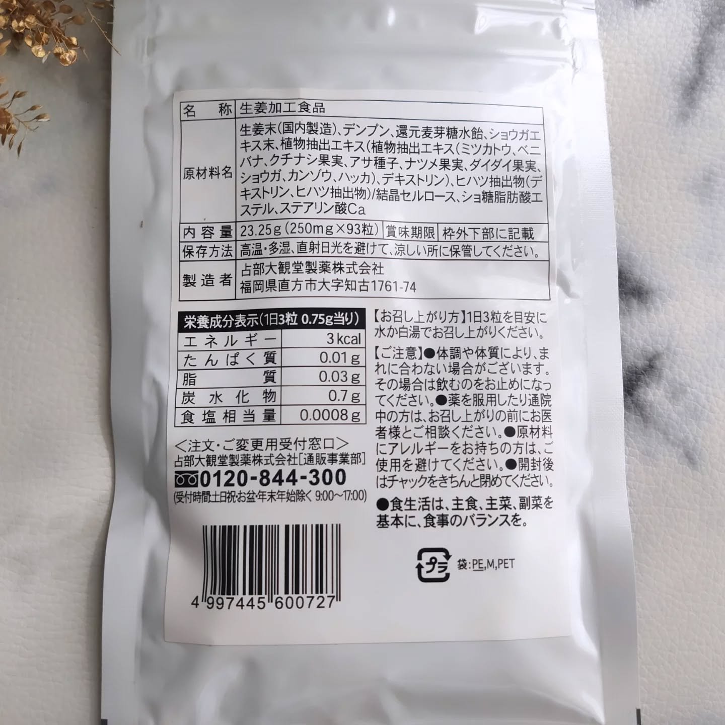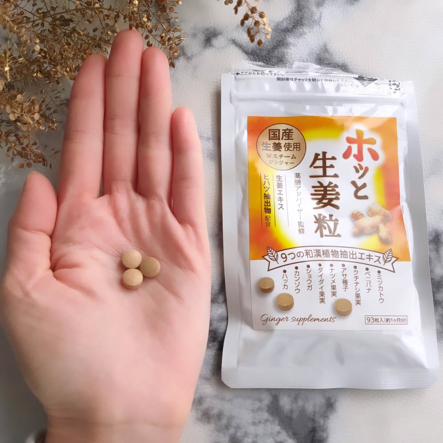 冷え性なので寒い今の季節は温活が欠かせない私... 外側からだけでなく内側からも積極的に生姜パワーを取り入れているのですが... こちらの『ホッと生姜粒』は、漢方の老舗 占部大観堂製薬(株)が、栄養士、薬膳アドバイザー監修のもと、開発製造⤴︎✨ 通常の生姜の6倍のショウガオールのダブルスチームジンジャーでぽかぽか♨️
