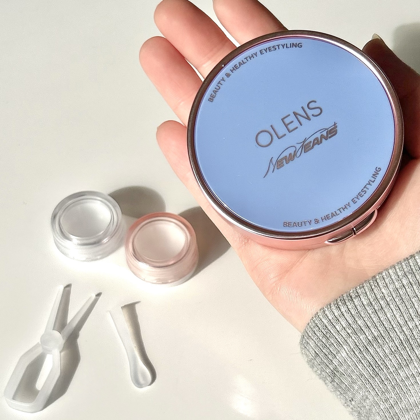 これめちゃくちゃ便利でびっくりしたd(ŐдŐ๑) コンタクトケースやコンタクト取るピンセットとつけるための棒がセットになってるコンパクト!! NewJeansって書いてあるからOLENSとNewJeansコラボのパケみたいだね。