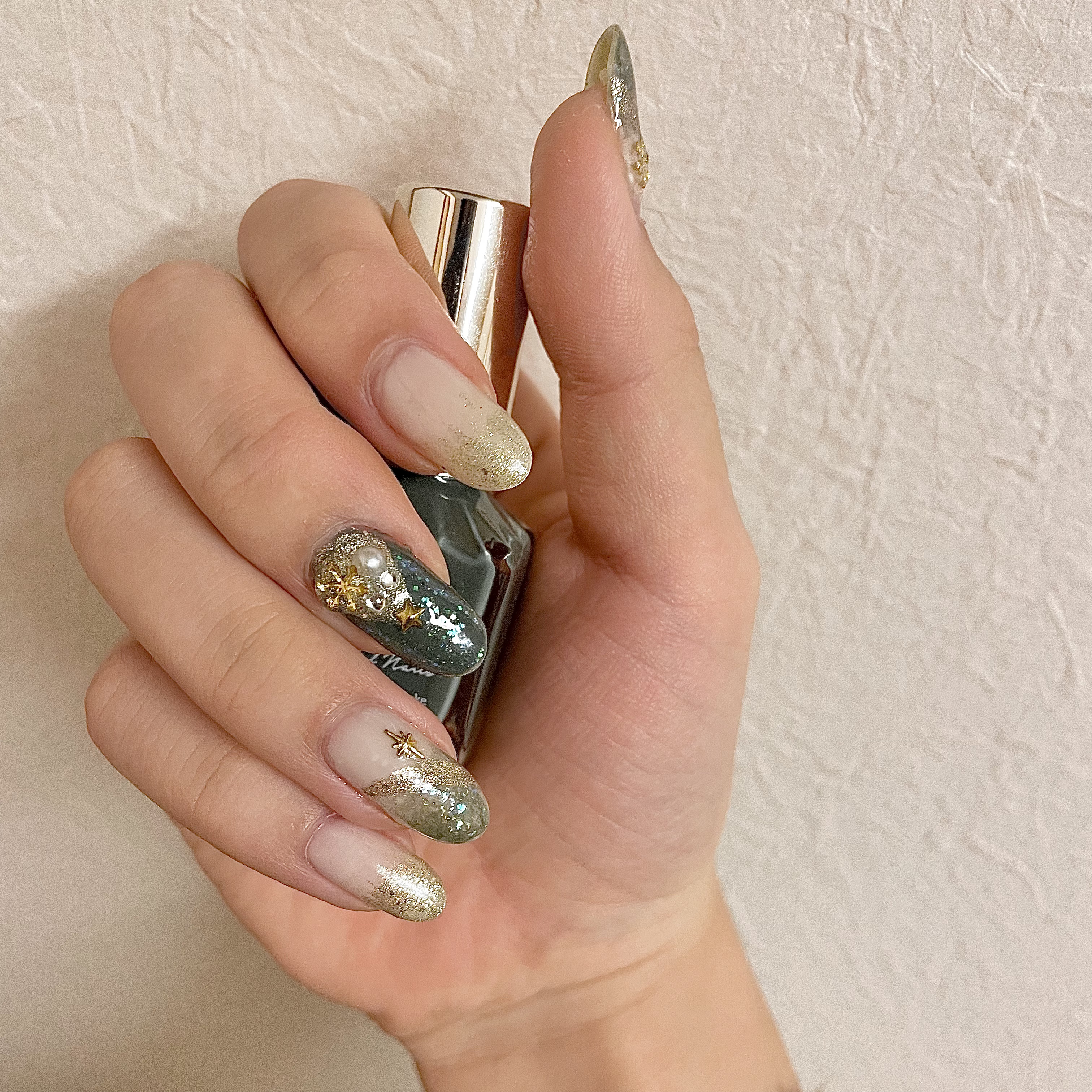 新しいネイルです🩵💫 偏光パール可愛くて最高です。今回は文句なし。使用ポリッシュ↓sopo29レイニースムージーキャンメイクN28スモーキーアクア...