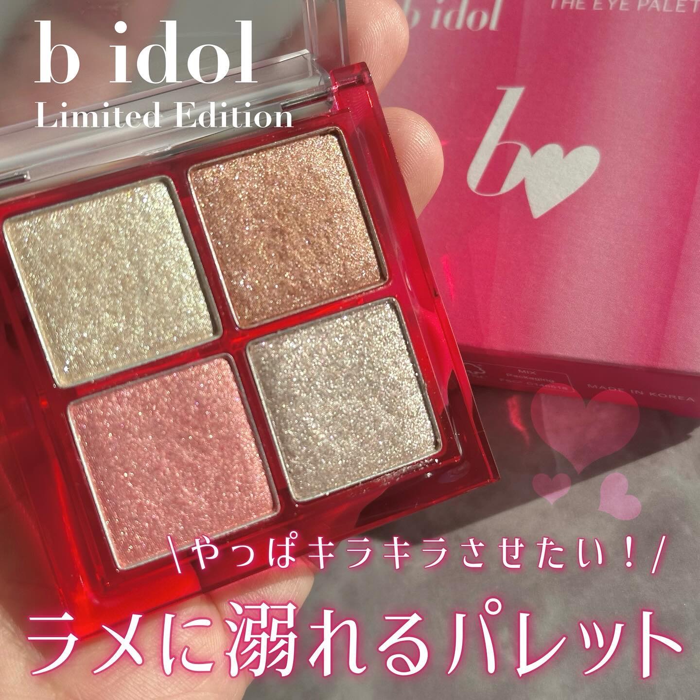 B IDOLのラメパレット✨とても使いやすかったです! ベージュ、ブラウン、ピンクなどさまざまなラメが入っていてどんなメイクと合わせられます!! どのラメも繊細で使いやすいですが右下のラメは他より大粒で目立つラメに感じました! ピンクやブラウンはベースのカラーも発色するので、ただのラメパレではない色々な使い方ができそうです!
