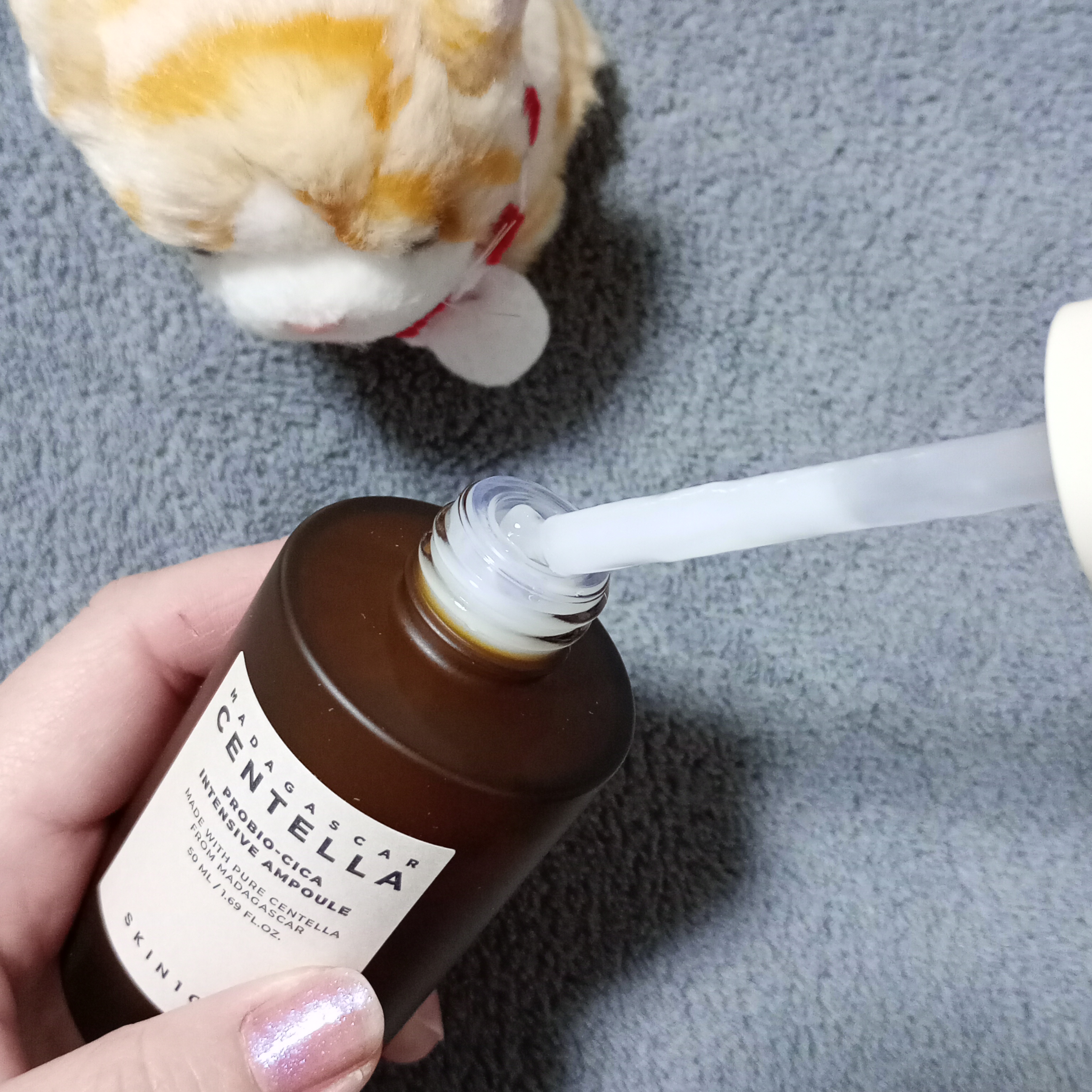 早速使ってみました。 スポイドタイプで、衛生的に使う事が出来ます。 透明で水のようにサラッとしたテクスチャー。 べた付かず、伸びが良いのでスーッと浸透してくれます。 お肌に素早く浸透し肌馴染みが良いので 化粧水後に使用するよりも 化粧水前の導入美容液として使う方がいいかも。
