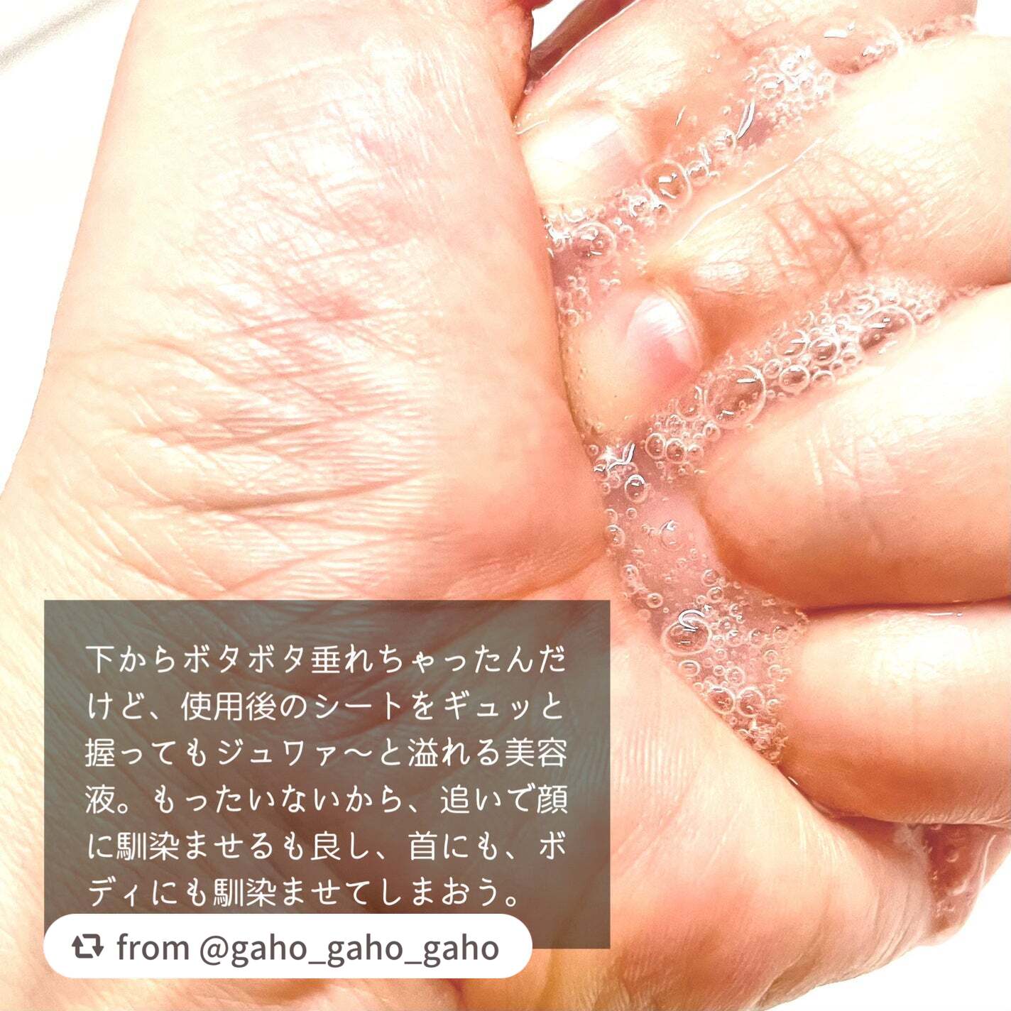 | スキンケアランキング第57位 | 袋を開けた瞬間から美容液がたっぷりで贅沢感 シートは薄めなのに破れにくく、顔全体にピタッと密着。液だれしにくいのでながらケアにも◎ | 詳細を見る | |