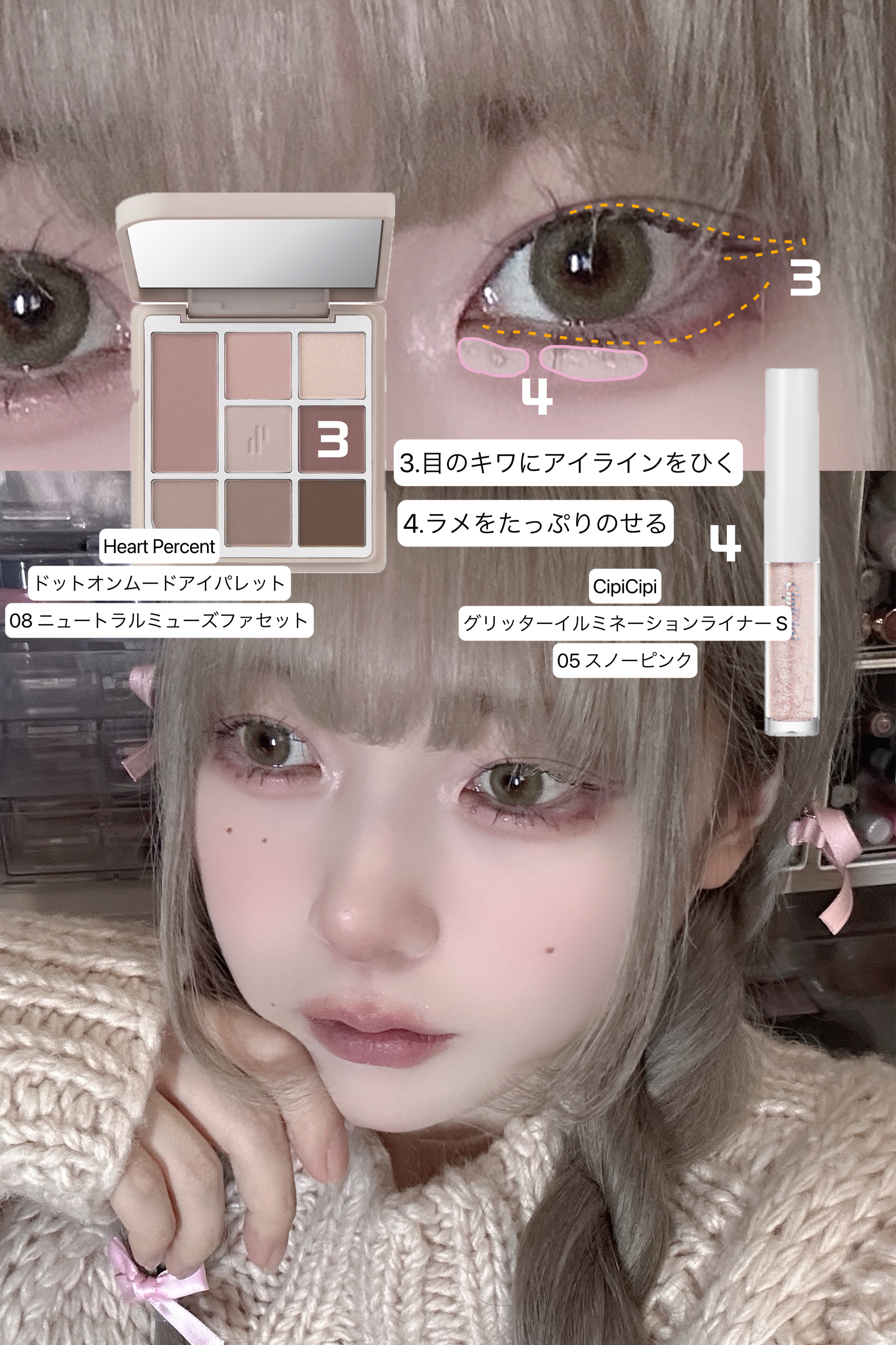 ❁︎❁︎一重、奥二重さん向け色素薄い系メイク❁︎❁︎⸜黒髪さんに似合う⸝裸眼でほんのりニュアンスピンクの色素薄い系メイク𓂃𓈒𓏸CANMAKE⚪︎パーフェクトスタイリストアイズ23アーモンドカヌレ⚪︎シルキースフレアイズ02ローズセピアニ...