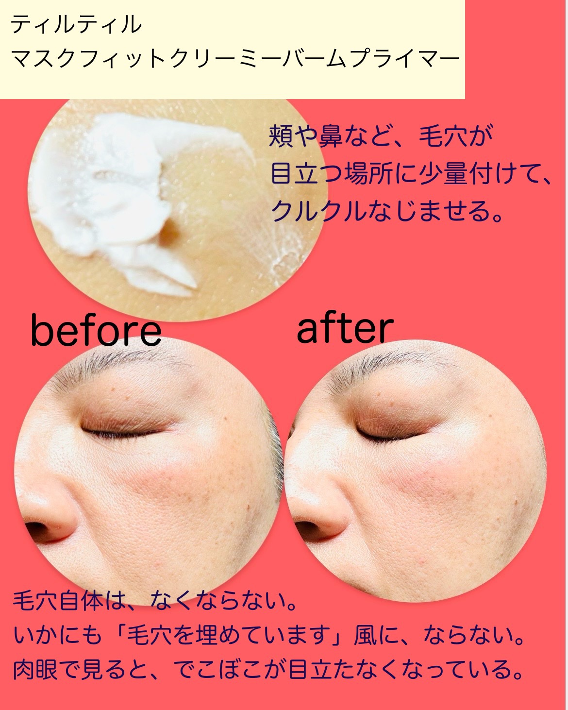 鼻に塗り込むと毛穴の凹凸をなめらかにしてくれてファンデが綺麗に乗りました! これからの冬も使えるし、かつ仕上がりはサラッとしていてしっとり感はありつつマット質感なのでテカリが気になる夏も使いやすい!! コスパ良くて年中使えず毛穴の凹凸カバーしたい下地を探している方におすすめです🤍