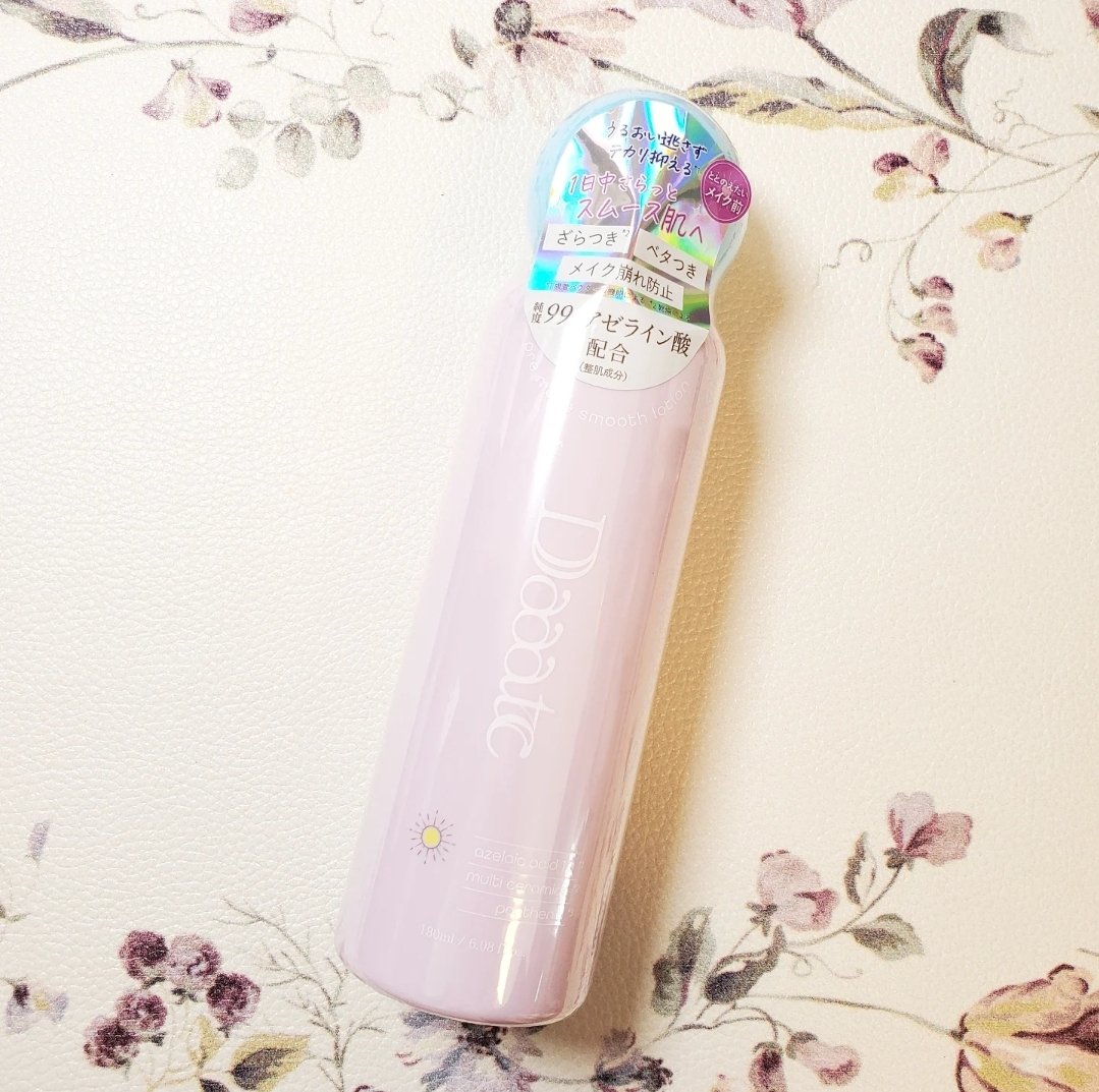 ころんとしたデザインがとても可愛いです。 メイク前に使うローションです。まろやかなとろみのあるローション。みずみずしく伸び広がり、すっと肌になじんでくれます。 メイクノリと化粧崩れに着目したプレメイク発想のスキンケア『Daaate(デイト)』。 Daaateプレメイクスムースローションは純度99%のピュアアゼライン酸配合で気になる肌悩みにアプローチ!
