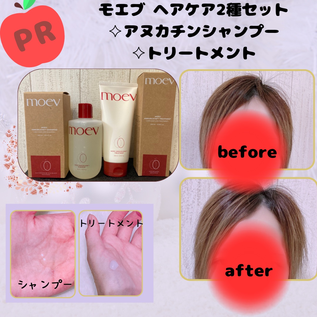 MOEVのシャントリは、抜け毛ケア&頭皮ケアのできる✨ アヌカチン™は、毛根力強化成分!22種のアミノ酸で髪に栄養補給しビタミンB複合体、ビオチンが髪の毛根から強化✨ 妊婦も使用可能な低刺激性シャンプーなところも頭皮トラブルがおきがちな私にはポイント高い💓