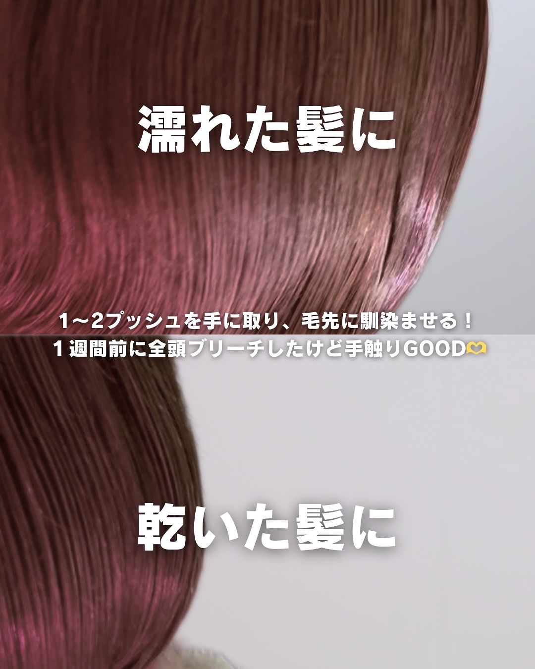 ブリーチ髪やハイダメージ髪向けのヘアオイルのレビューです! ヘアオイルはしっかりととろみのあるテクスチャーでした! アップル&ホワイトムスクの香りがいい香りでした🍎