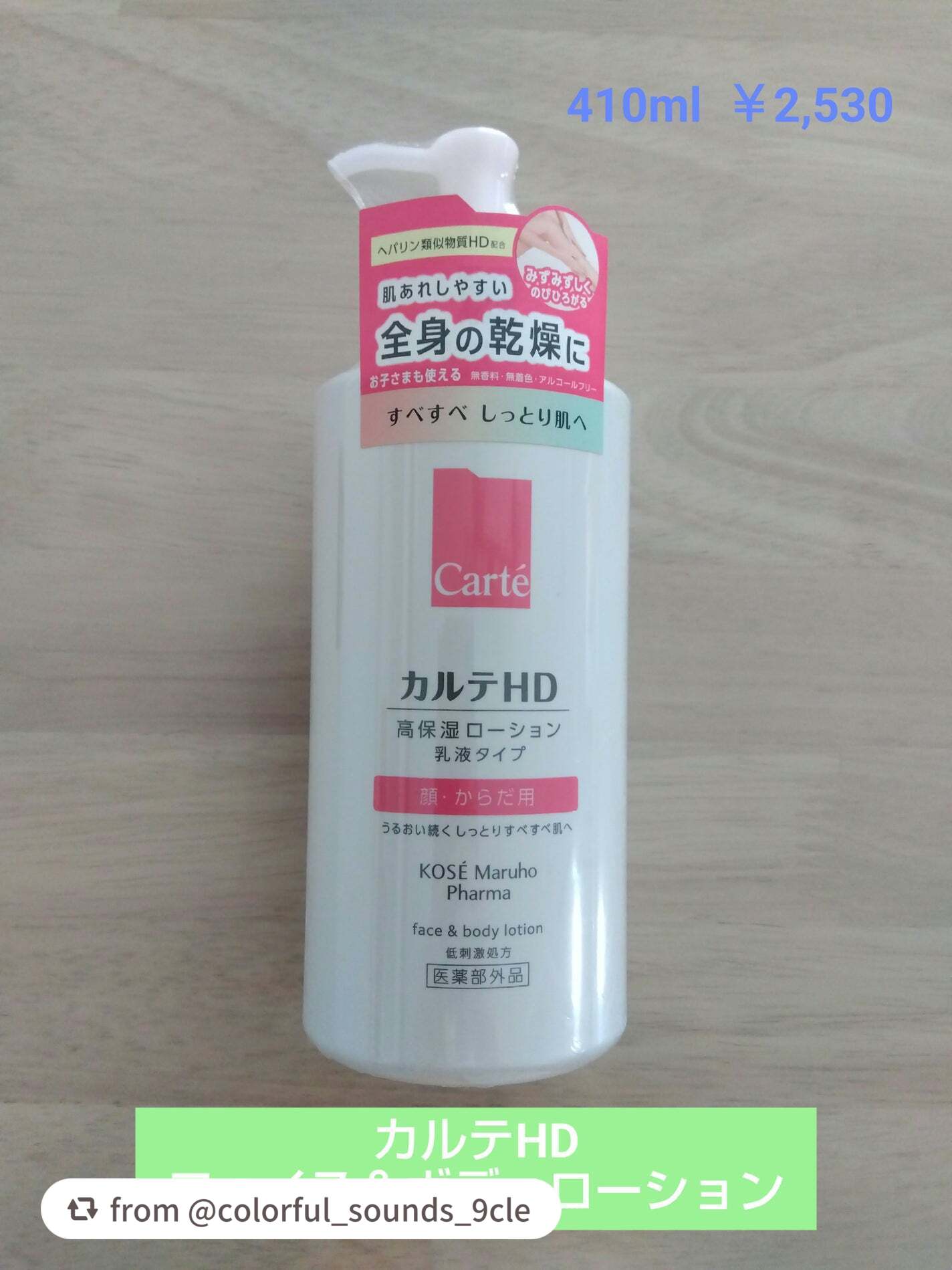 - 【高保湿フェイス&ボディローション】 顔にもからだにも。しっとりやわらか肌つづく。 信頼の保水有効成分「ヘパリン類似物質HD※」配合、低刺激処方の高機能フェイス&ボディローションです。 ヘパリン類似物質HDが、気温・湿度の変化で乾燥しやすいからだの肌のうるおい構造(角層ラメラ)を立て直し、しっとりやわらか肌に導きます。 2種のこだわりオイル配合で、しっとりするのにべたつかず、なめらかにのびひろがる使用感。敏感な肌でもまさつによるストレスがなく、全身をうるおいで満たします。 カルテHDシリーズとしては初めてお子さま(3歳以上)にもお使いいただける商品。 ・ボトルタイプ(220mL) ・ポンプタイプ(410mL) ・つめかえ用(370mL)の3種でラインアップ。 ご自身の保湿に、ご家族や大切なかたの保湿に。みずみずしくなめらかなうるおいが全身を包み込むフェイス&ボディローションです。 ※保水有効成分ヘパリン類似物質のこと <販売名:HD フェイスボディL>