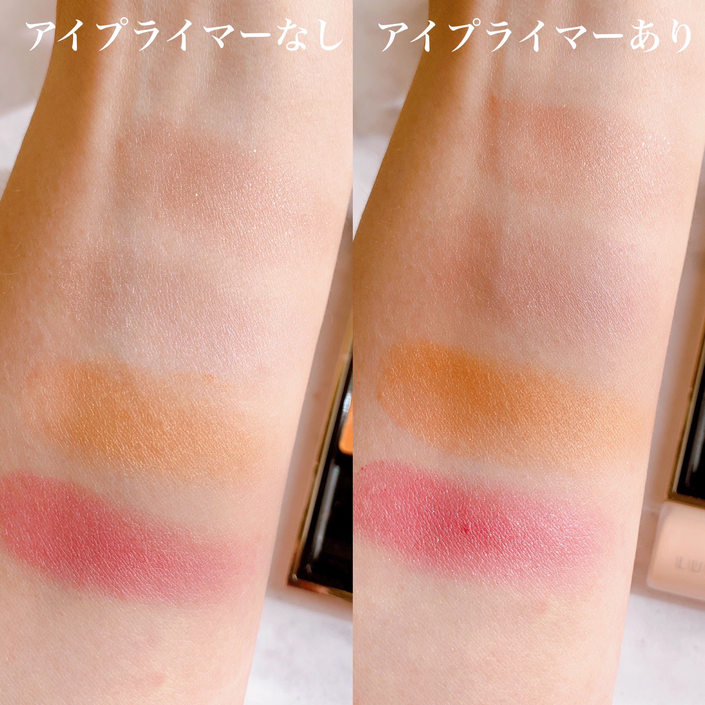 ルナソル スムースフィックスアイプライマーは、美容液のようにしっとりで少量で潤いを感じた! 微細なパールが入っていて明るい黄色みのないベージュが目元を明るくトーンアップしてくれてくすみも気にならなくなった! アイシャドウの色もちがUPするし、湿度を感じるしっとり仕上がりに。アイシャドウの発色がキレイに出て濃くなりすぎる訳でなくキレイにぼかすことができたよ!
