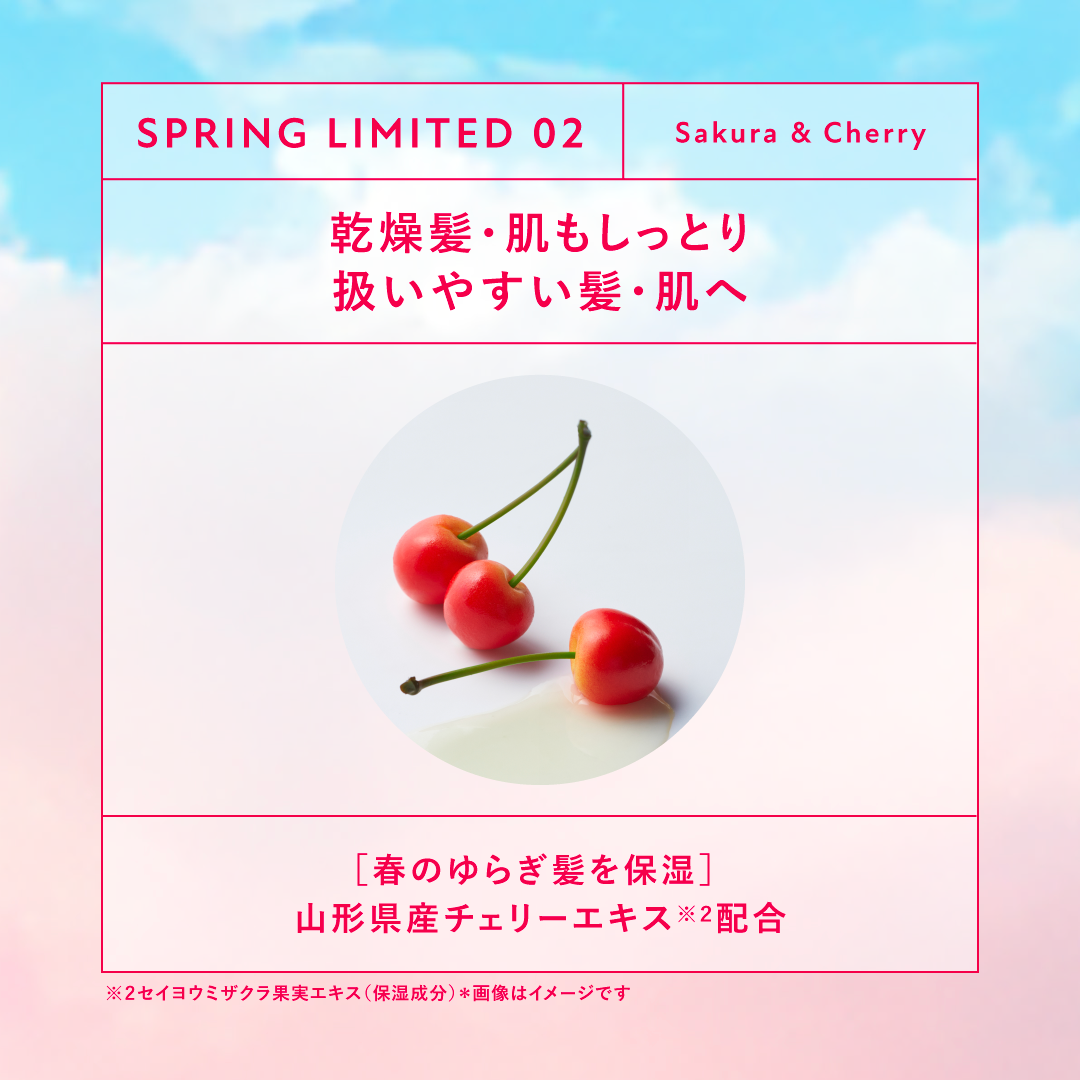 🌸春季限定シリーズ発売🌸初桜・夜桜・葉桜・満開の桜の情景をイメージしたダブルフレグランスと仕上がりで、新生活シーズンに向けた新しい自分との出会いを後押し♪春限定シリーズ初のスプリングバリアコンプレックスを配合し、花粉・UV・寒暖差からくる春特...