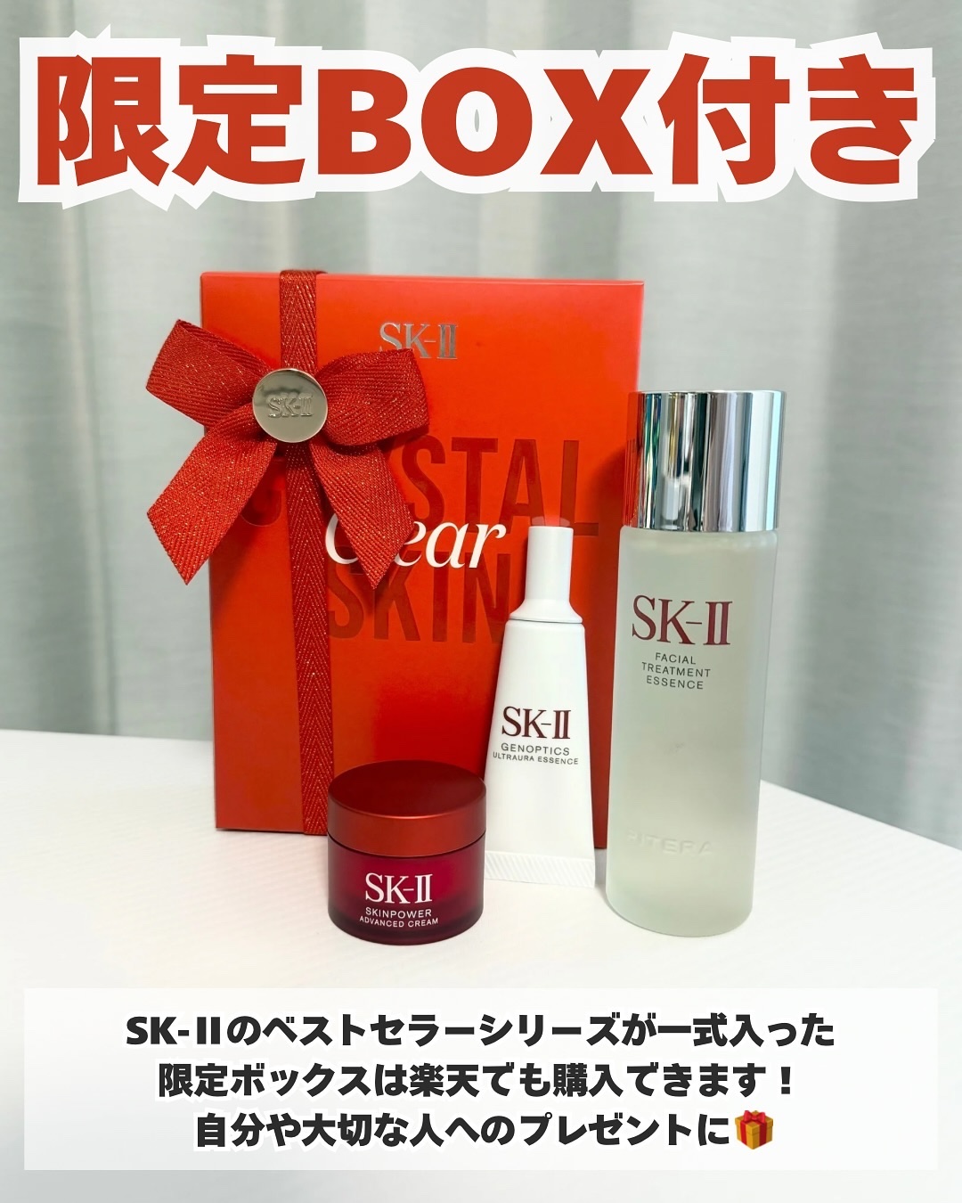 初SK-II‼️見た瞬間感動( ´•̥̥̥ω•̥̥̥`) 可愛すぎるし、赤パケいっぱいでテンション上がる🎍🌅🎍 こちらは、大好きな大好きな#RU ちゃんからのクリスマスプレゼント🎁です(´•͈ω•͈⑅)