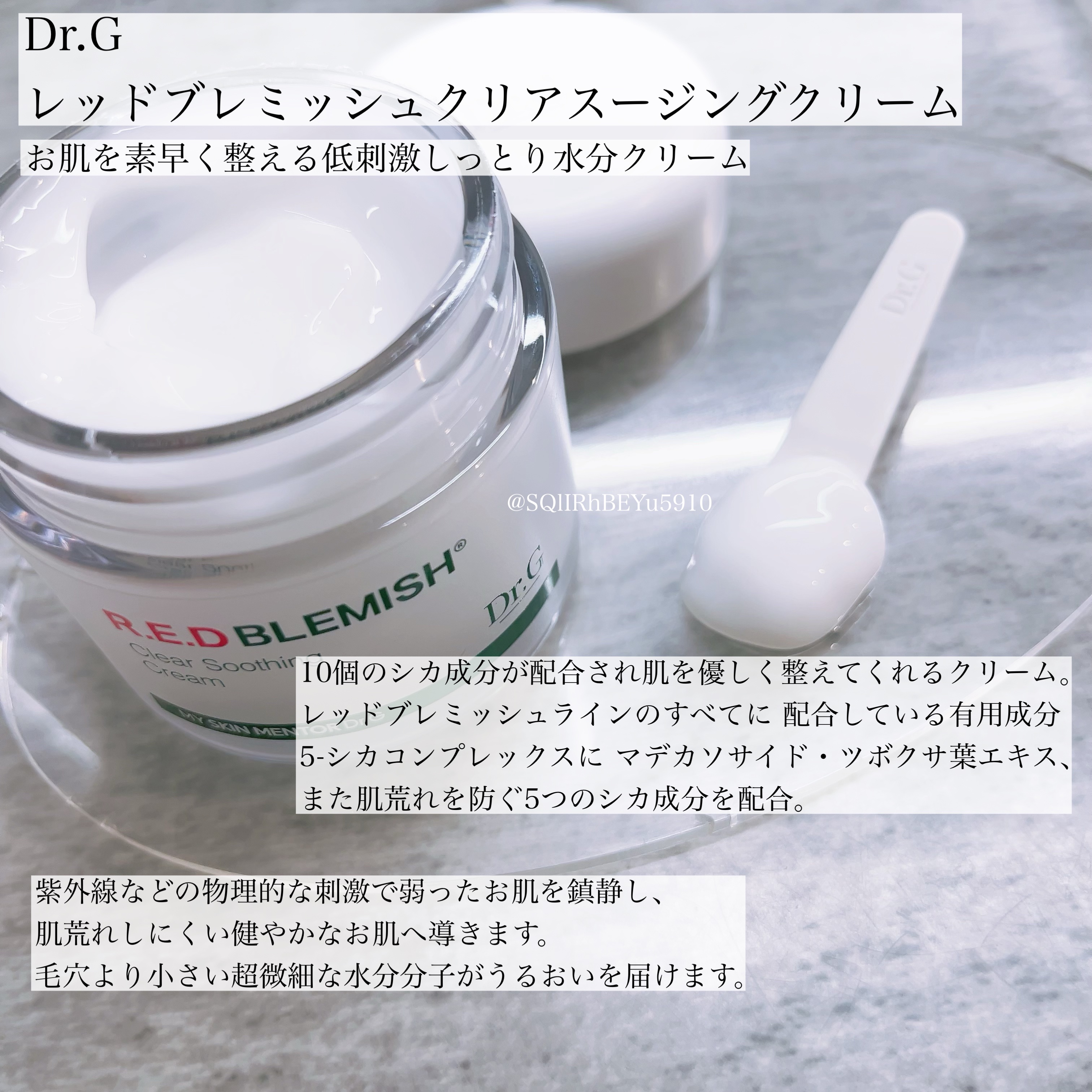 Dr.Gさまからいただきました。Dr.Gレッドブレミッシュクリアスージングクリーム✂🌿クーリングケア▶︎心地よいひんやり感。肌を刺激から守る。🌿マデカソサイドなどのシカ成分10種類配合。▶︎花粉、紫外線、熱、マスクなどの外部物理刺激でのト...